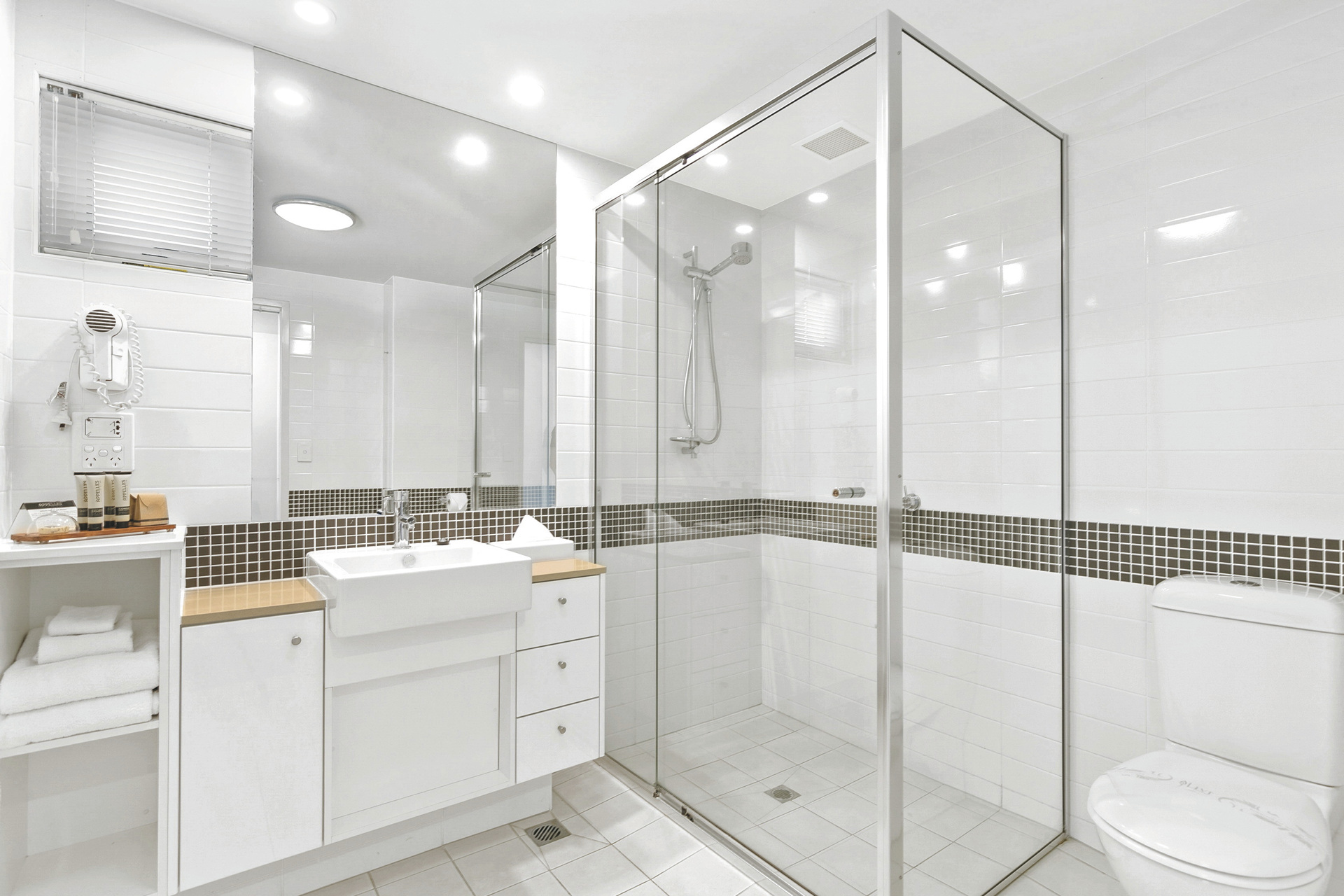 Die moderne, auf Selbstversorger ausgerichtete Apartment-Anlage verfügt über einen beheizbaren Außenpool, einen Whirlpool sowie einen BBQ-Bereich. WLAN ist kostenfrei verfügbar, ebenso wie Parkplätze in der hauseigenen Tiefgarage. Die Rezeption ist Montags bis Freitags von 8.30 bis 16.30 Uhr besetzt, an Wochenenden von 9.00 bis 12.00 Uhr.