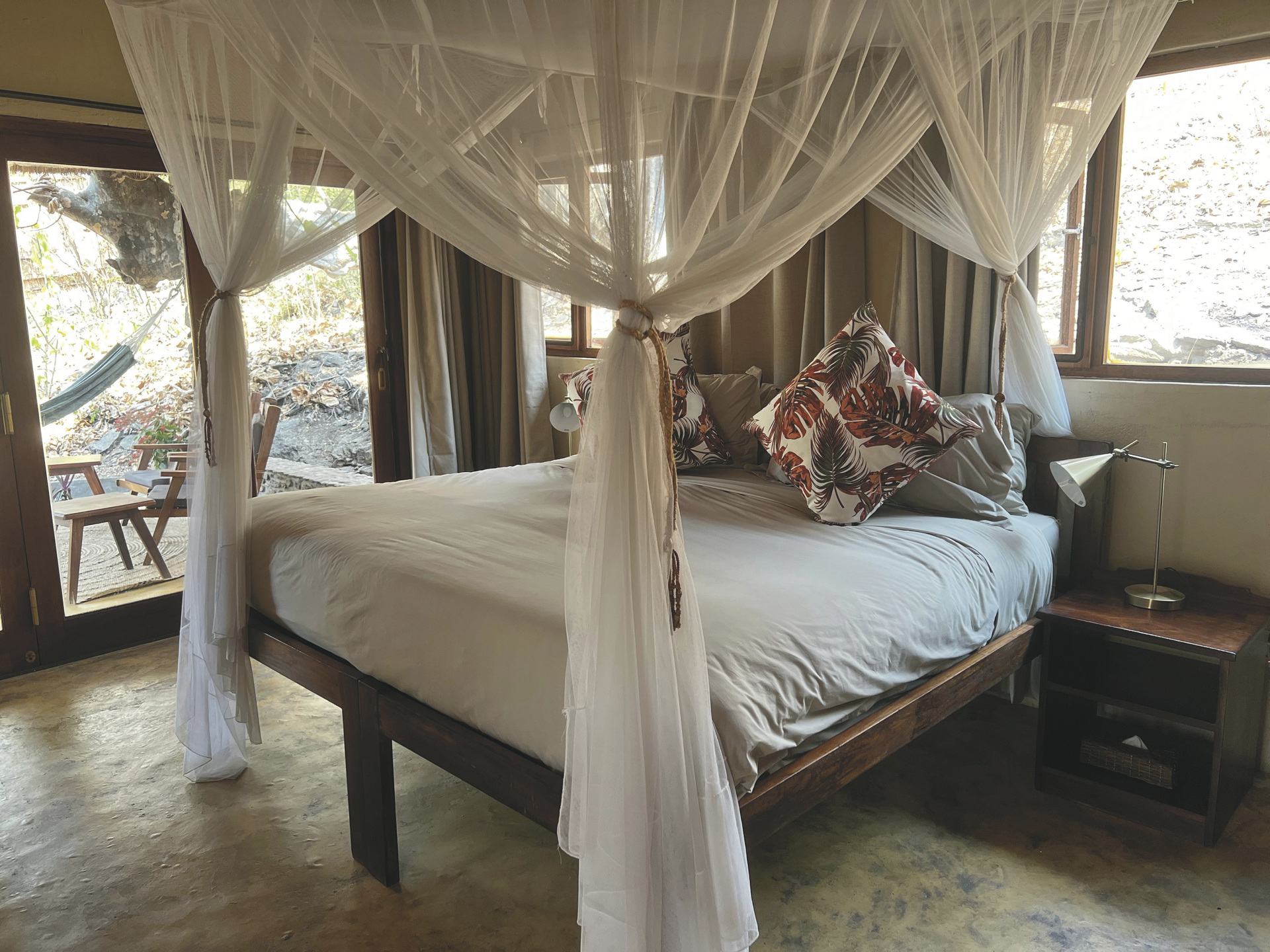 Die insgesamt 12 Chalets, Cottages und Safarizelte liegen großzügig, oft in direkter Ufernähe mit Zugang zum See, auf der Insel verstreut. Jedes verfügt über ein eigenes, modernes, meist offenes Bad, Moskitonetz und eine überdachte Terrasse mit herrlichem Blick über den See. Bis auf die etwas kleineren Safarizelte, die dicht beim Hauptgebäude liegen, haben alle Unterkünfte auch einen Kühlschrank. Das Pitta Cottage erreicht man über eine Treppe, erhöht bietet es Abgeschiedenheit, aber als einzige Unterkunft keinen Seeblick. Die Executive-Chalets bieten ein oder zwei Schlafzimmer, eines sogar einen privaten Plunge Pool. Das Familiencottage verfügt über zwei Schlaf- und Badezimmer sowie einen großzügigen Loungebereich und somit reichlich Platz für Familien mit insgesamt 6 Personen.