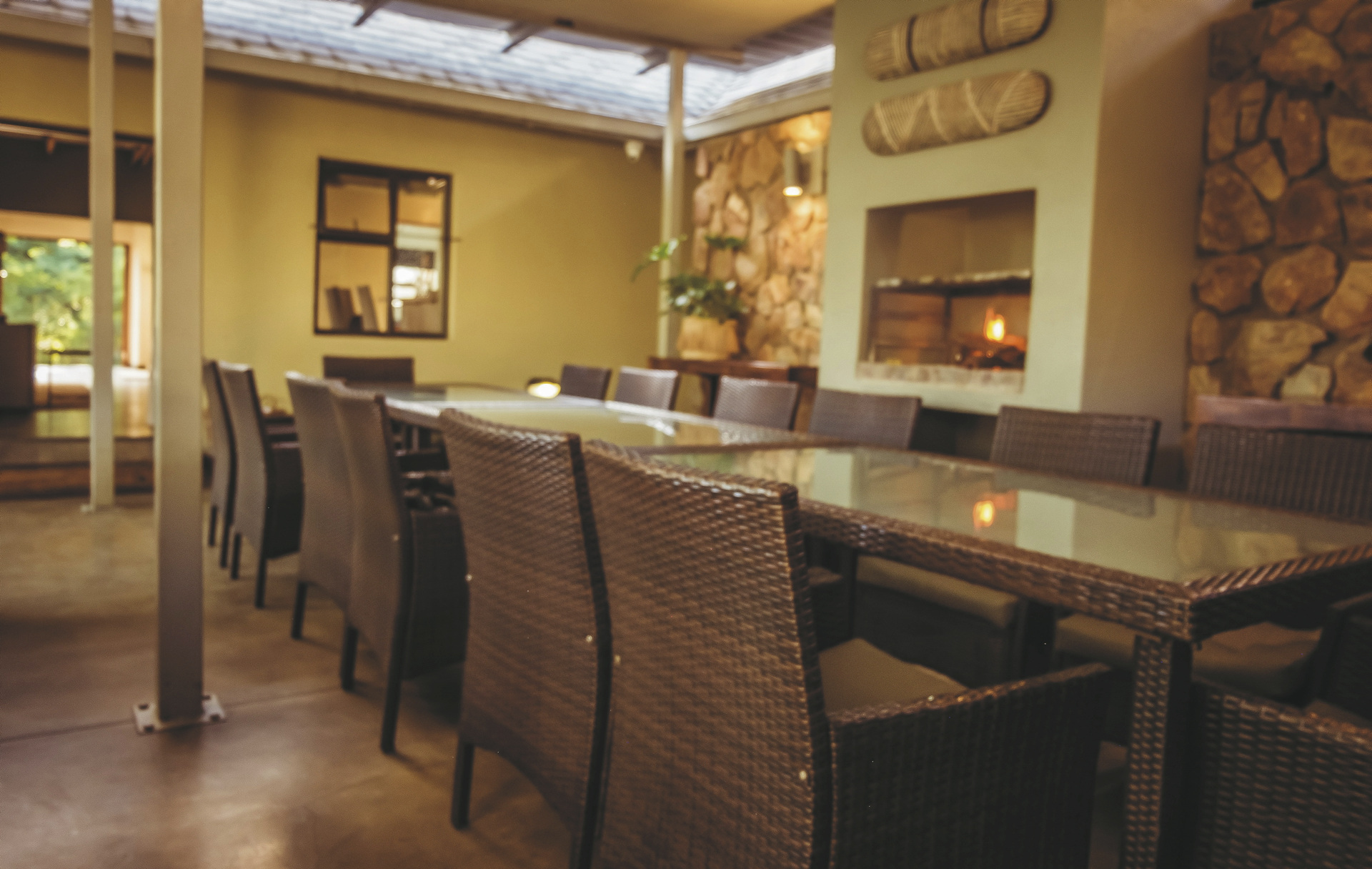 Die kleine Lodge teilt sich das Grundstück mit dem größeren Schwesterhotel Bushveld Terrace Hotel, beide werde jedoch unabhängig voneinander geführt und Gäste der kleinen Lodge genießen viel Privatsphäre. Entsprechend gemütlich und familiär geht es auch in der Lodge zu. Im zentralen Bereich finden Sie das Speisezimmer, die Bar, eine großzügige Lounge mit TV und Kamin sowie eine überdachte Terrasse, auf der meist die Mahlzeiten eingenommen werden. Im eingezäunten Garten sorgt ein kleiner Pool für Erfrischung, am Abend brennt hier ein loderndes Feuer und verspricht ein geselliges Beisammensein. Der Spa-Bereich und ein Fitnesscenter im Schwesterhotel können ebenfalls in Anspruch genommen werden. Eingeschlossene Aktivität: Pirschfahrten. Optionale Aktivität: geführte Buschwanderung ab/bis Schwesterhotel.