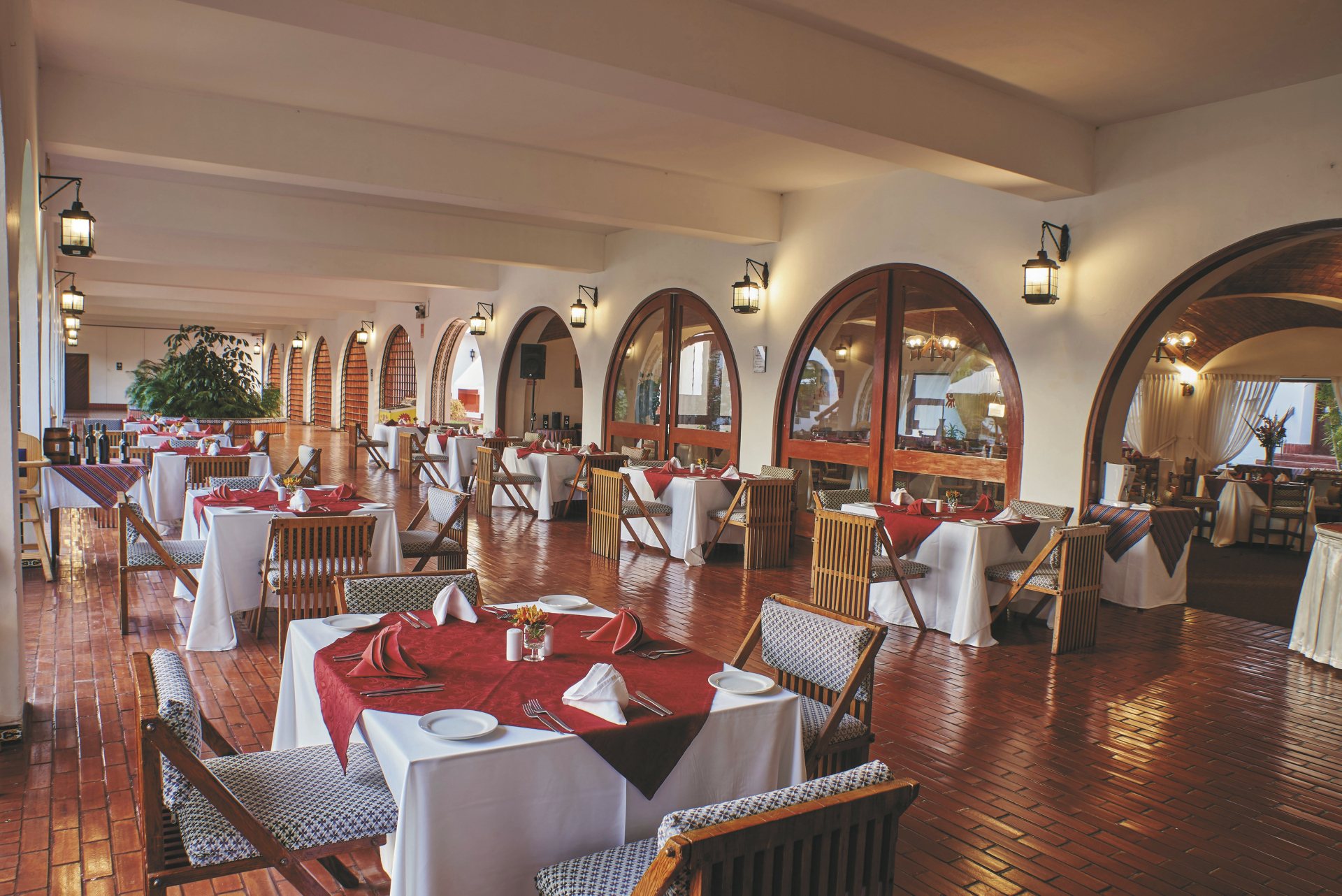 Das Herzstück des im Stil einer Hacienda erbauten Hotels, ist ein großer offener Innenbereich mit Garten und einer Poolanlage. Ein Restaurant, eine Bar und ein Planetarium runden das Angebot ab.