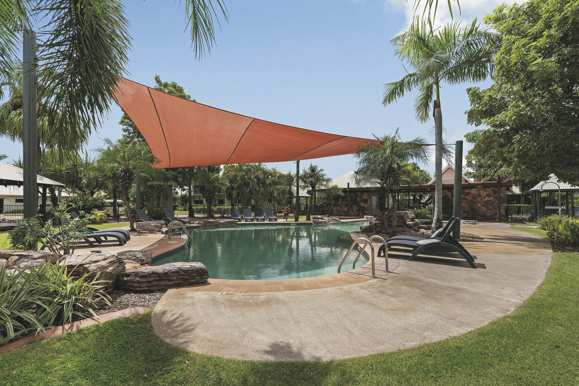 Den Gästen steht ein einladender Pool, ein BBQ-Platz, Waschsalon, überdachte Parkplätze und kostenloses WLAN zur Verfügung. Im Hotel nebenan gibt es ein Restaurant und eine Bar mit Außenterrasse.