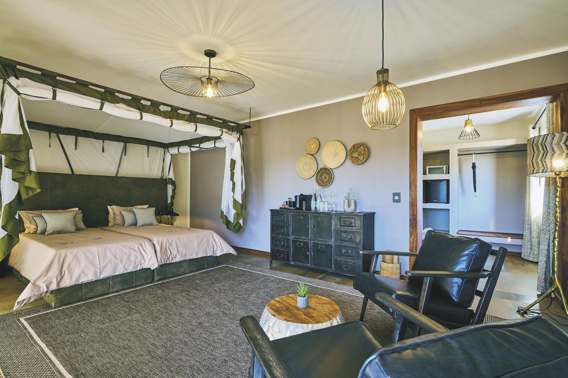 Es gibt 10 geräumige Standardzimmer mit modernem Bad, Safe, Ventilator, Fön, Tee-/Kaffeezubereiter, Moskitonetz und großer schattiger Terrasse. Die 4 Superior-Chalets bietet viel Privatsphäre und eine spektakuläre Aussicht. Zu der gehobenen Ausstattung zählt hier auch eine Klimaanlage, eine großzügige Lounge und eine Kitchenette.