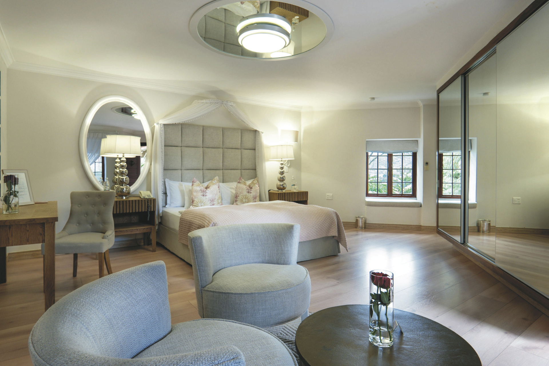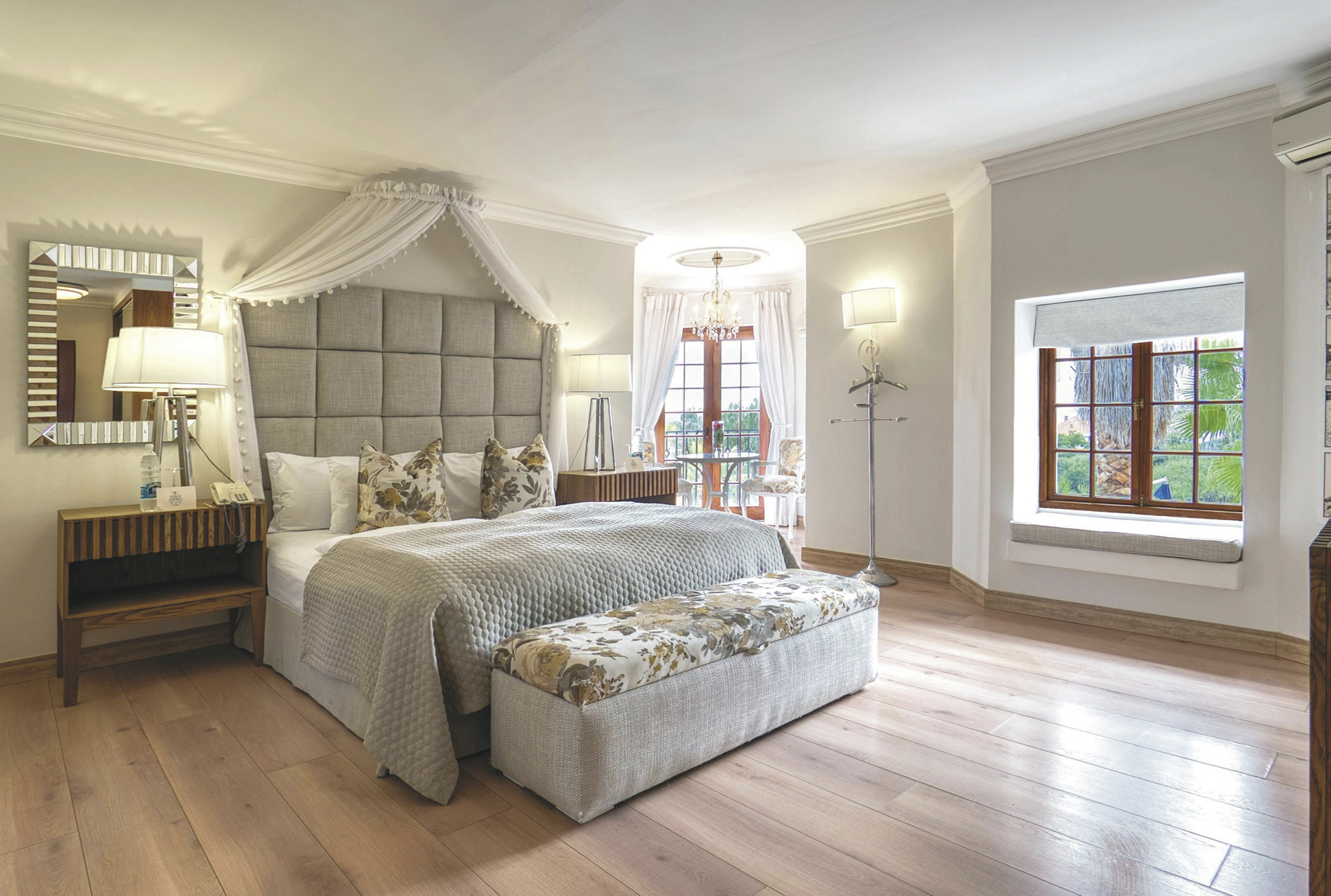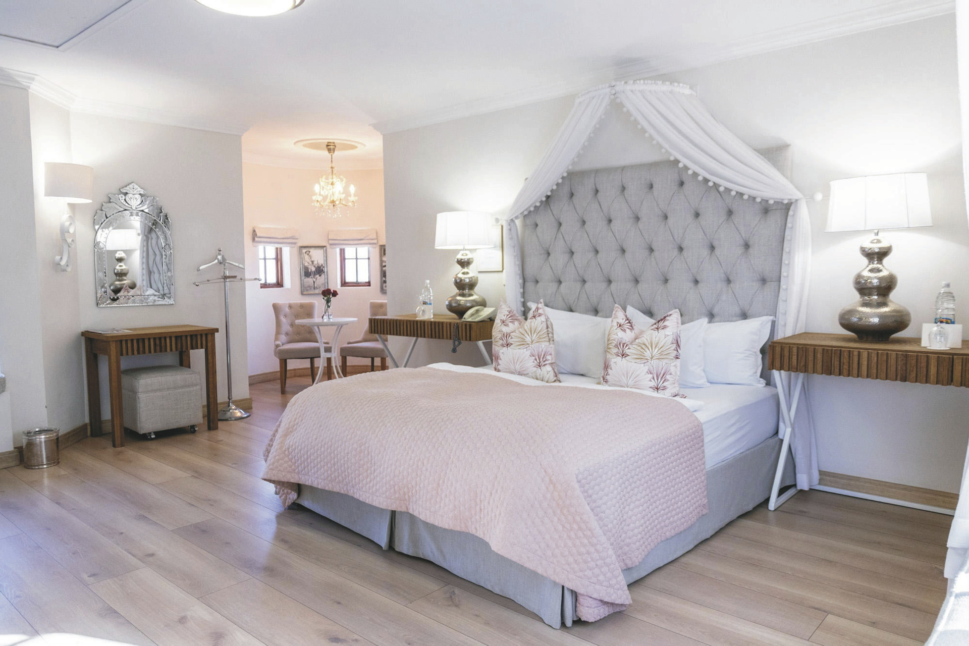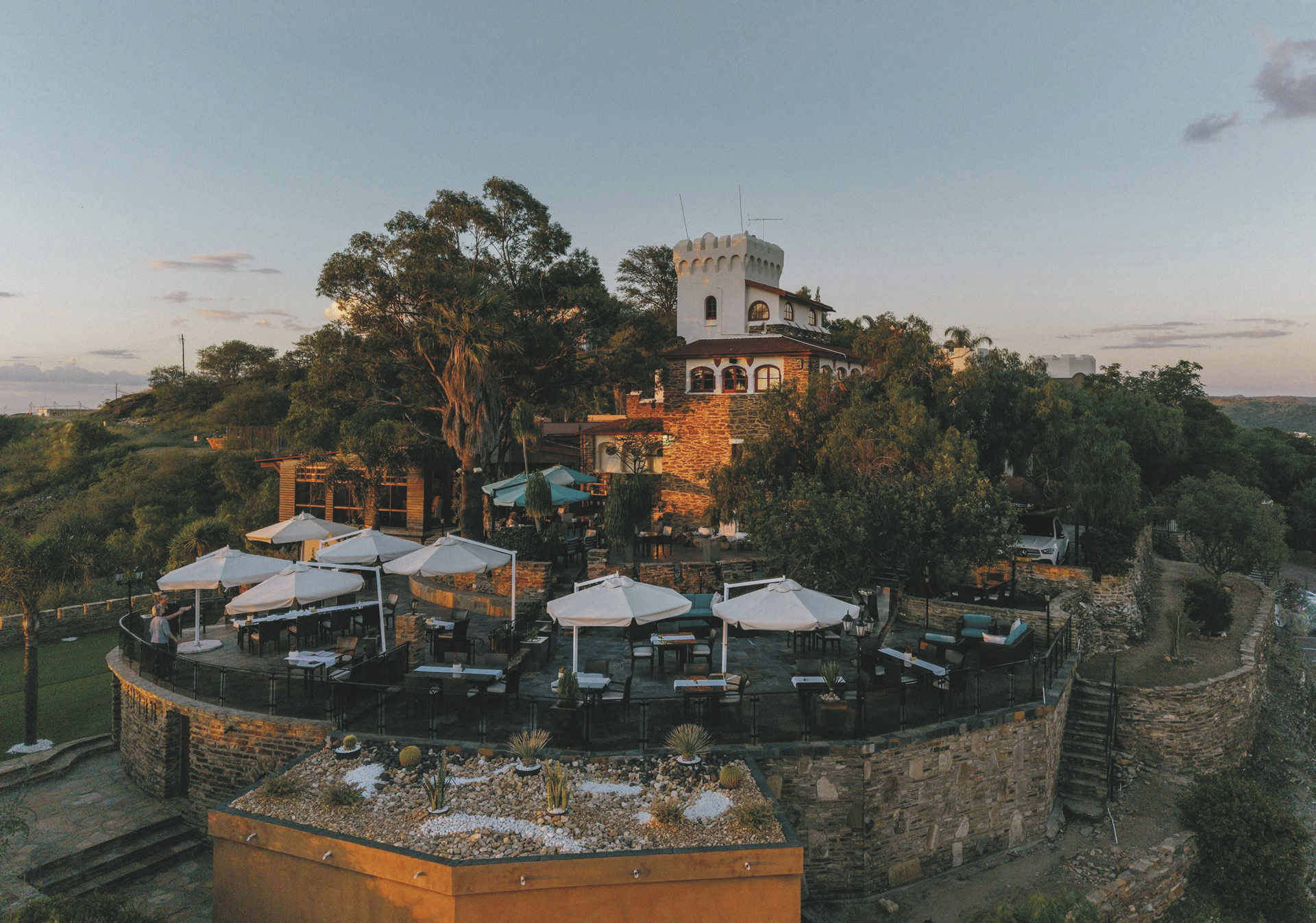 Das bereits 1914 vom Grafen von Schwerin für seine Verlobte erbaute Haus steht in Namibia für hervorragenden Service und kulinarische Genüsse. Das Top Gourmet-Restaurant Leo‘s at the Castle verfügt über den größten privaten Felsen-Weinkeller des Landes und ist längst kein Geheimtipp mehr. Private Abendessen können Sie auch im Ritterraum einnehmen. Von der Terrasse hat man einen herrlichen Blick über die Stadt. Ein beheizbarer Pool mit Sonnenliegen verspricht ebenso Entspannung, wie eine optionale Massage, die Sie in Ihrem Zimmer genießen können. Kostenloses WLAN und bewachter Parkplatz stehen selbstverständlich zur Verfügung.