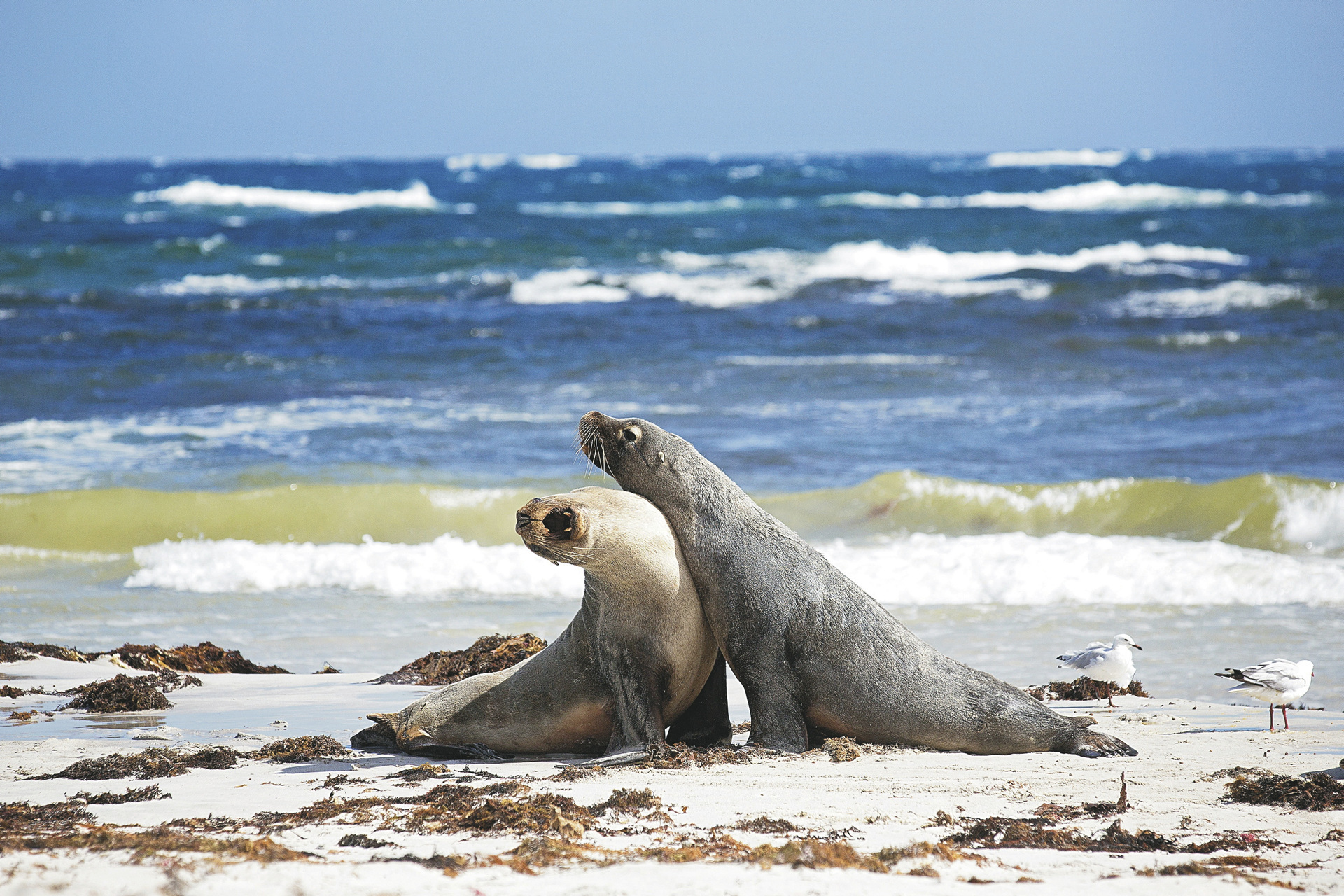 Sie bekommen einen Eindruck vom Inselleben – wo sich alles langsamer anfühlt, Autofahrer beim Vorbeifahren winken oder sogar anhalten, um ein Schwätzchen zu halten. Genießen Sie eine Tasse Tee mit hausgemachten Leckereien, bevor Sie einen Spaziergang durch hohe Eukalyptusbäume machen, in denen Koalas schlummern oder kurz aufwachen, um etwas zu fressen. Lauschen Sie den Geräuschen des Buschs – bunten Honigfressern und leuchtenden Papageien, Zikaden oder vielleicht einfach nur der Stille. Durch die fruchtbarste Region der Insel geht's zur Nordküste. Wandern Sie mit Ihrem Reiseleiter durch den Busch, vorbei an seltsam geformten Bäumen und erfahren Sie, woher die Geräusche kommen, wem die Spuren gehören und wer diesen kleinen Haufen dort hinterlassen hat. Halten Sie Ausschau nach kleinen Wallabys, die auf dem Festland fast ausgestorben sind, einem Känguru, das nur auf Kangaroo Island zu finden ist, und einer Vielzahl anderer Vögel, Pflanzen und Tiere. Bei der Mittagspause in einem privaten Buschcamp genießen Sie ein köstliches Essen mit King George Whiting (einem lokalen Fisch), frischen Salaten und erlesenen südaustralischen Weinen. Im Seal Bay Conservation Park unternehmen Sie mit Ihrem Reiseleiter eine private Tour zu den australischen Seelöwen an einem wunderschönen Sandstrand. Beobachten Sie die Jungtiere beim Säugen oder Spielen in der Brandung, sehen Sie alte Bullen mit den Narben von Revierkämpfen und erfahren Sie mehr über ihre einzigartige Fortpflanzungsbiologie. Erleben Sie einen typischen Tag auf Kangaroo Island.