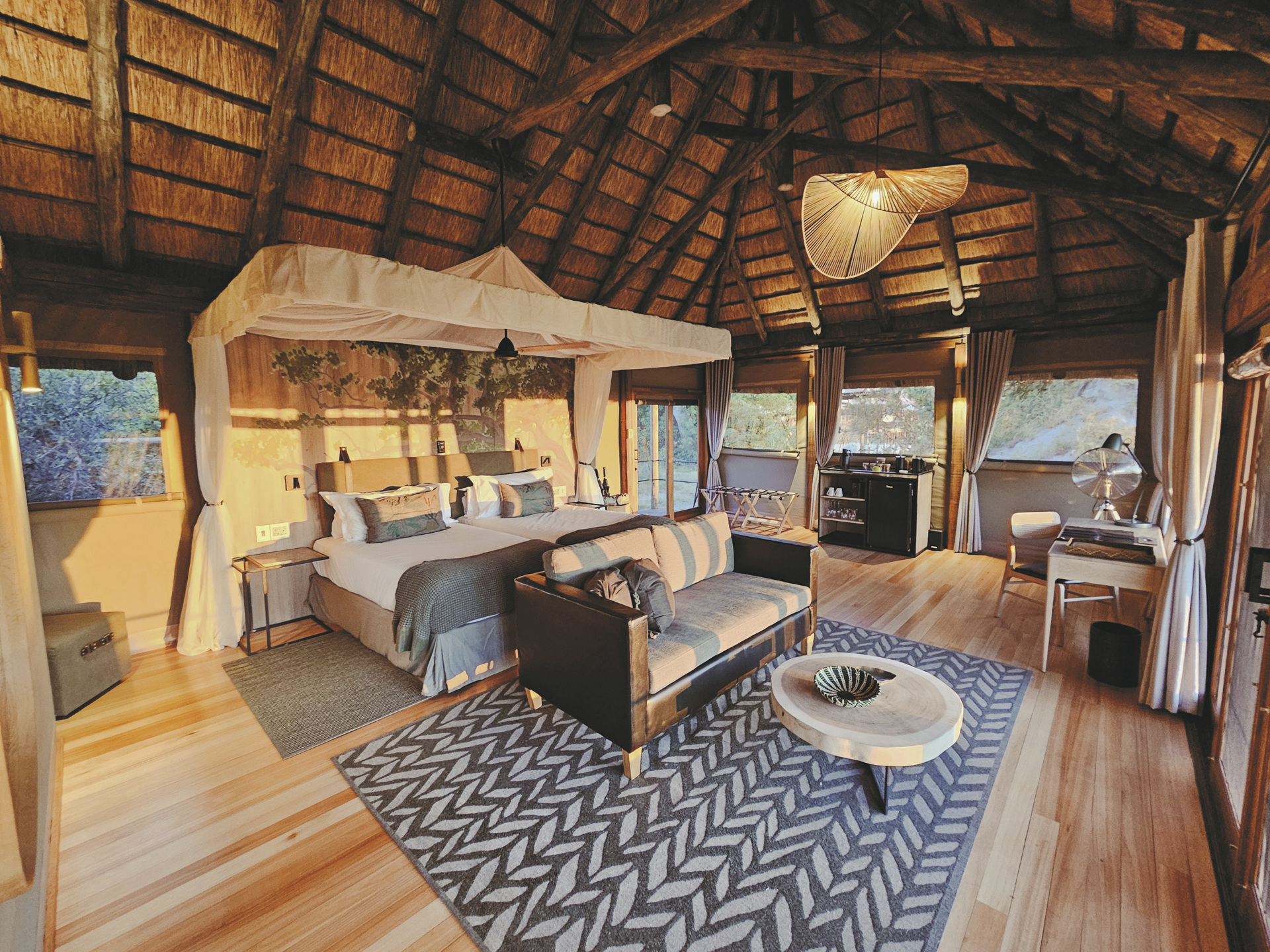 Übernachtung, Vollpension, lokale Getränke, Safari-Aktivitäten, Nationalparkgebühren, Wäscheservice.