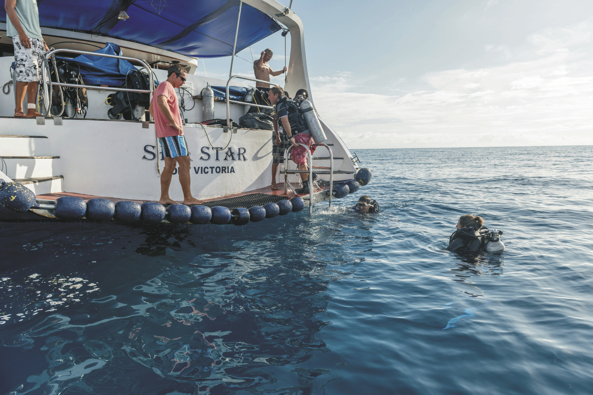 Bordingenieur (nur S.Y. Sea Star), zwei Matrosen, drei Hostessen, Tauchlehrer und einem Koch.