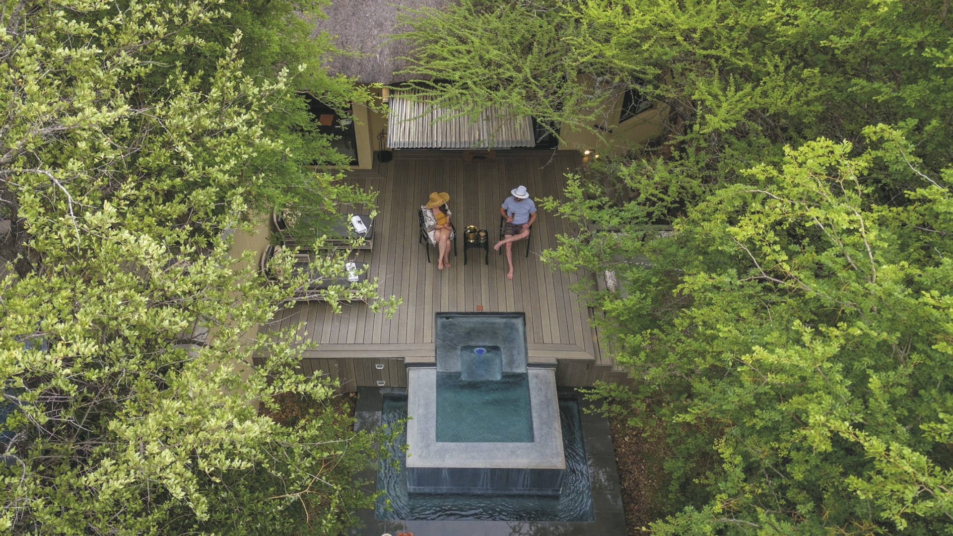 Luxus im kolonialen Buschstil mit besten Safarimöglichkeiten, vor allem Leoparden sind hier häufig zu sehen, das ist Kings Camp. Im zentralen Bereich finden Sie die Lounge mit Bibliothek, TV, Computer und WLAN; Restaurant und Bar sowie einen Shop und den Fitnessraum. Entspannung finden Sie im Spa oder am Pool, von hier und von der Sonnenterrasse hat man einen wunderbaren Blick auf das Wasserloch. Das Abendessen findet vorzugsweise in der Boma unter freiem Himmel statt, kann aber auch ganz individuell auf der privaten Terrasse der Suite eingenommen werden. Den besten Blick auf das gut besuchte Wasserloch hat man entweder von der strohgedeckten Aussichtslounge oder dem Kings Warren - einem unterirdischen Beobachtungsversteck, am Rande des Wasserloches. Mit Steckdosen zum Laden von Akkus, Klimaanlage und einseitigem Fotoglas ist das Versteck für Fotografen perfekt ausgestattet. Eingeschlossene Aktivitäten: Pirschfahrten und Buschwanderungen.