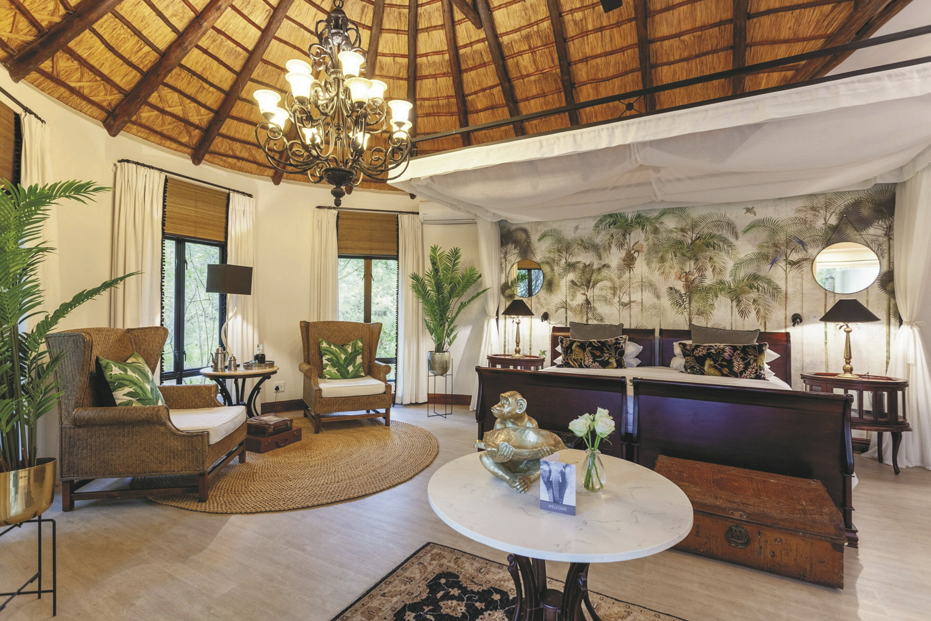 6 geräumige, riedgedeckte Suiten, modern im hellen Kolonialstil eingerichtet mit Feuerstelle und Plunge Pool. Alle verfügen über ein eigenes Bad mit Innen- und Außendusche, Lounge, WLAN, Klimaanlage/Heizung, Safe, Fön, Telefon, Minibar, Moskitonetz und Terrasse mit bester Aussicht. Die 2 Honeymoon Suiten sind Romantik pur und haben einen großen Plunge Pool und ein offenes Bad. Die Familiensuite besteht aus 2 Schlaf- und Badezimmern.