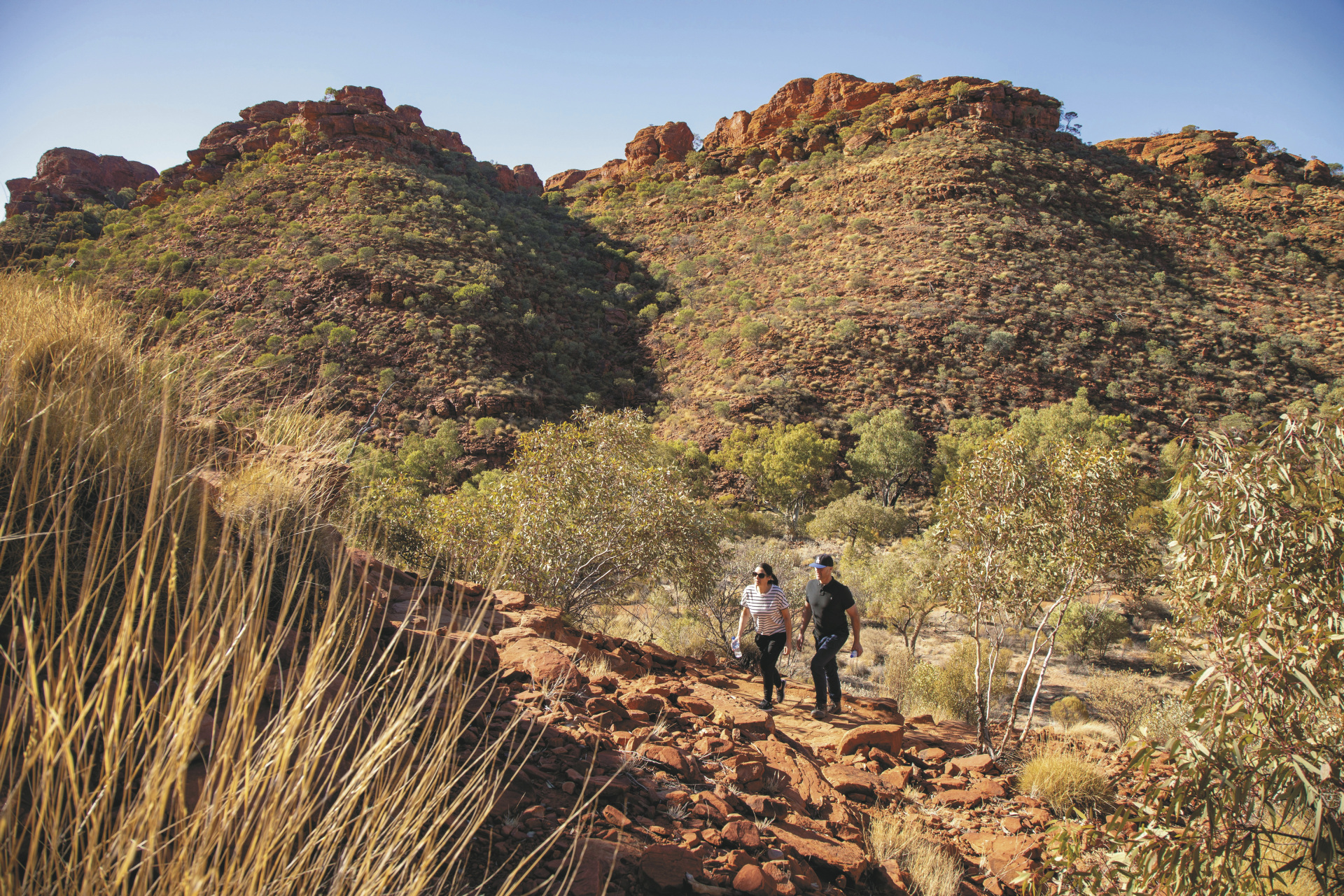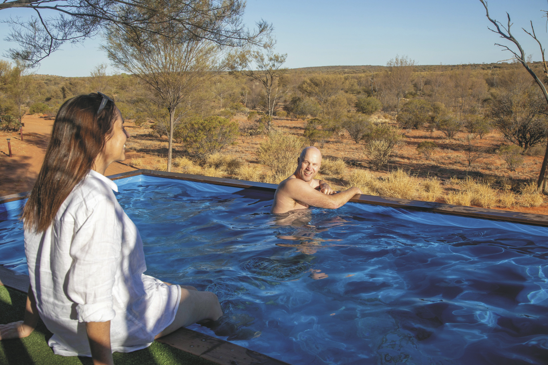 Inmitten des australischen Outbacks bietet die riesige Rinderfarm ein authentisches Erlebnis. Die Kombination aus abgeschiedener Lage, eindrucksvoller Landschaft und naturnahem Komfort macht sie zu einer besonderen Basis für die Erkundung der uralten Landschaften des Watarrka National Parks, in dem sich der mächtige Kings Canyon befindet.