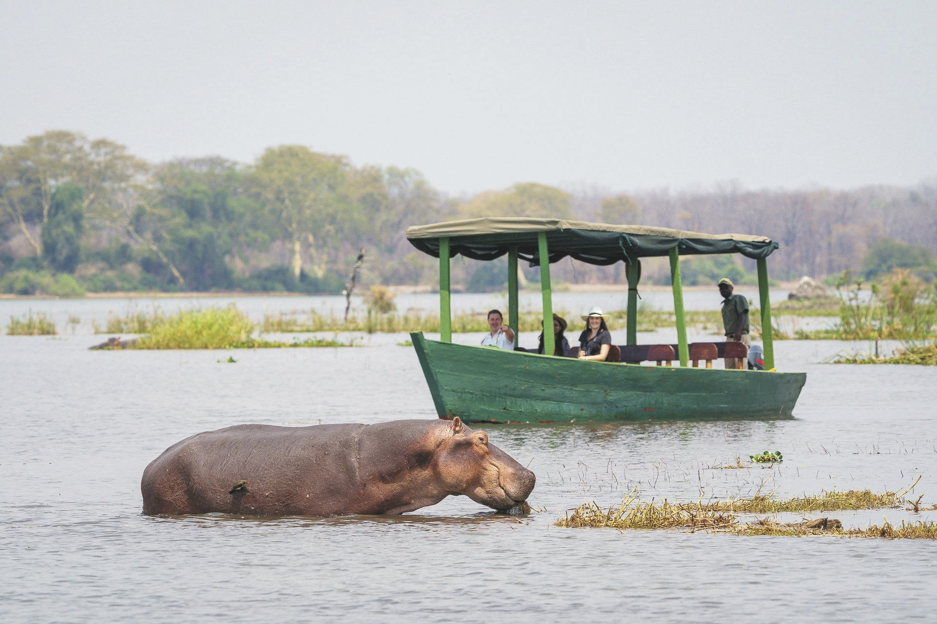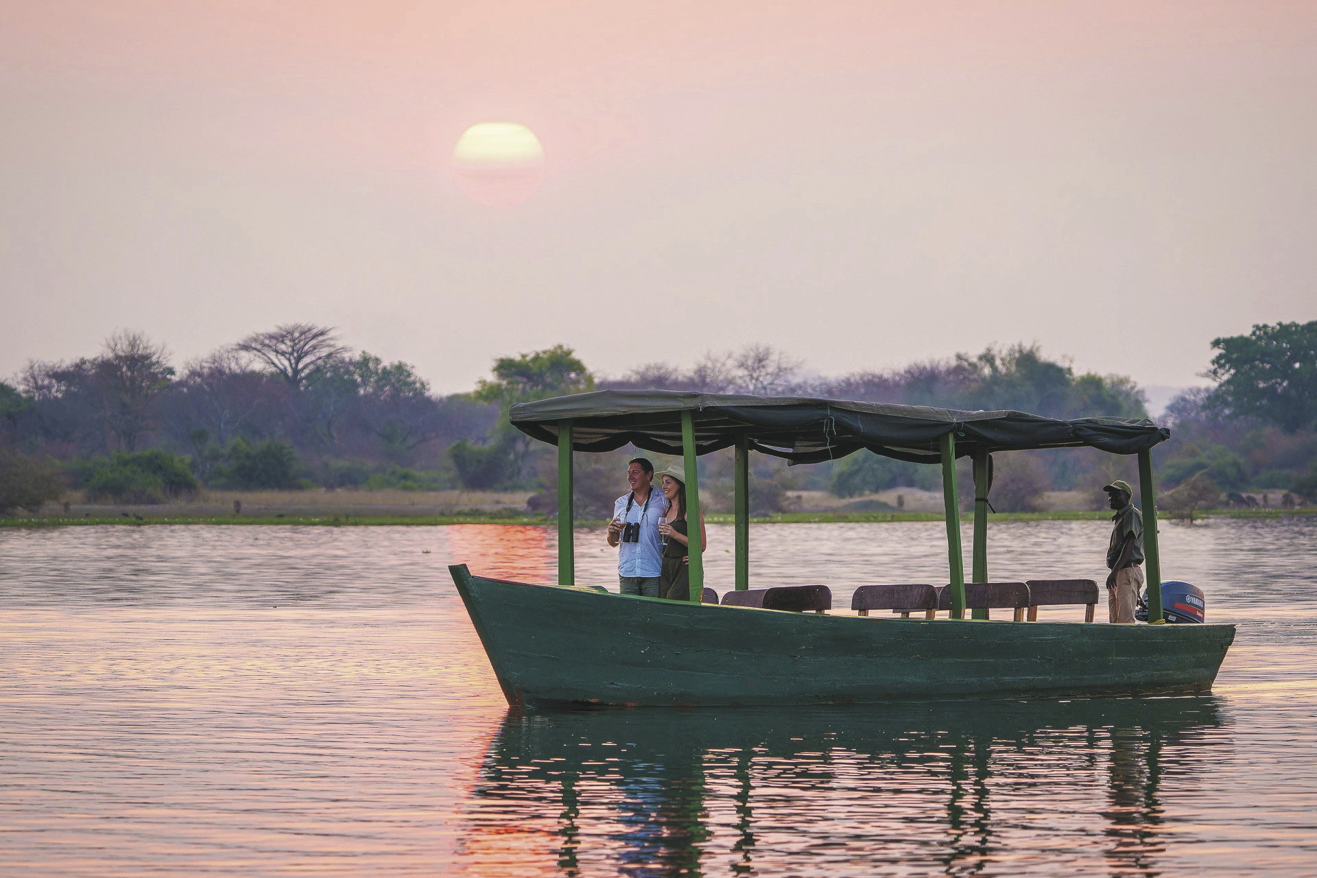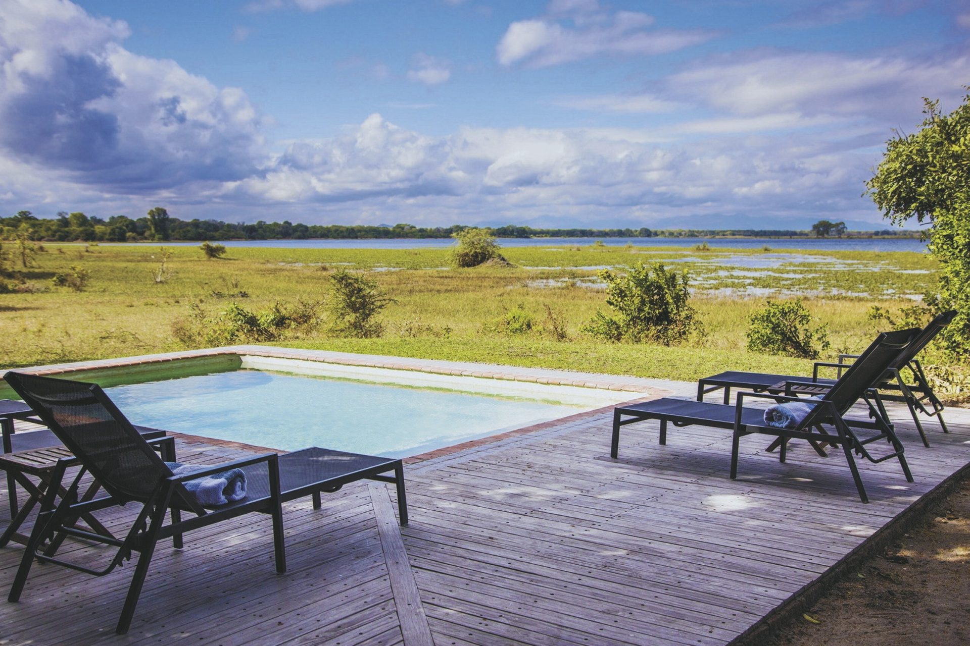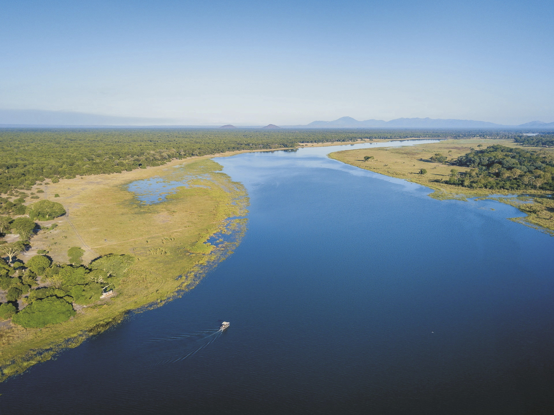 Das nicht eingezäunte Camp ist wunderschön zwischen Baobas und Fieberbäumen eingebettet, der Blick wird immer auf den vorbeiziehenden Fluss gelenkt. Häufig kommt das Wild ganz nah. Im zentralen Bereich gibt es zwei offene Zelte. Eines fungiert als Speisezimmer, das andere, gemütlich mit Sofas und Sesseln eingerichtet, steht als Bar- und Loungezelt zur Verfügung. Am Abend trifft man sich rund um das Lagerfeuer zum gemütlichen Plausch und zur Sternenbeobachtung. Zwischen den Safari-Aktivitäten kann man vom kleinen Pool das Wild am Fluss beobachten. Das Camp wird über Solarenergie und einen Notfallgenerator betrieben. Eingeschlossene Aktivitäten: Pirsch- und Bootsfahrten, geführte Buschwanderungen.
