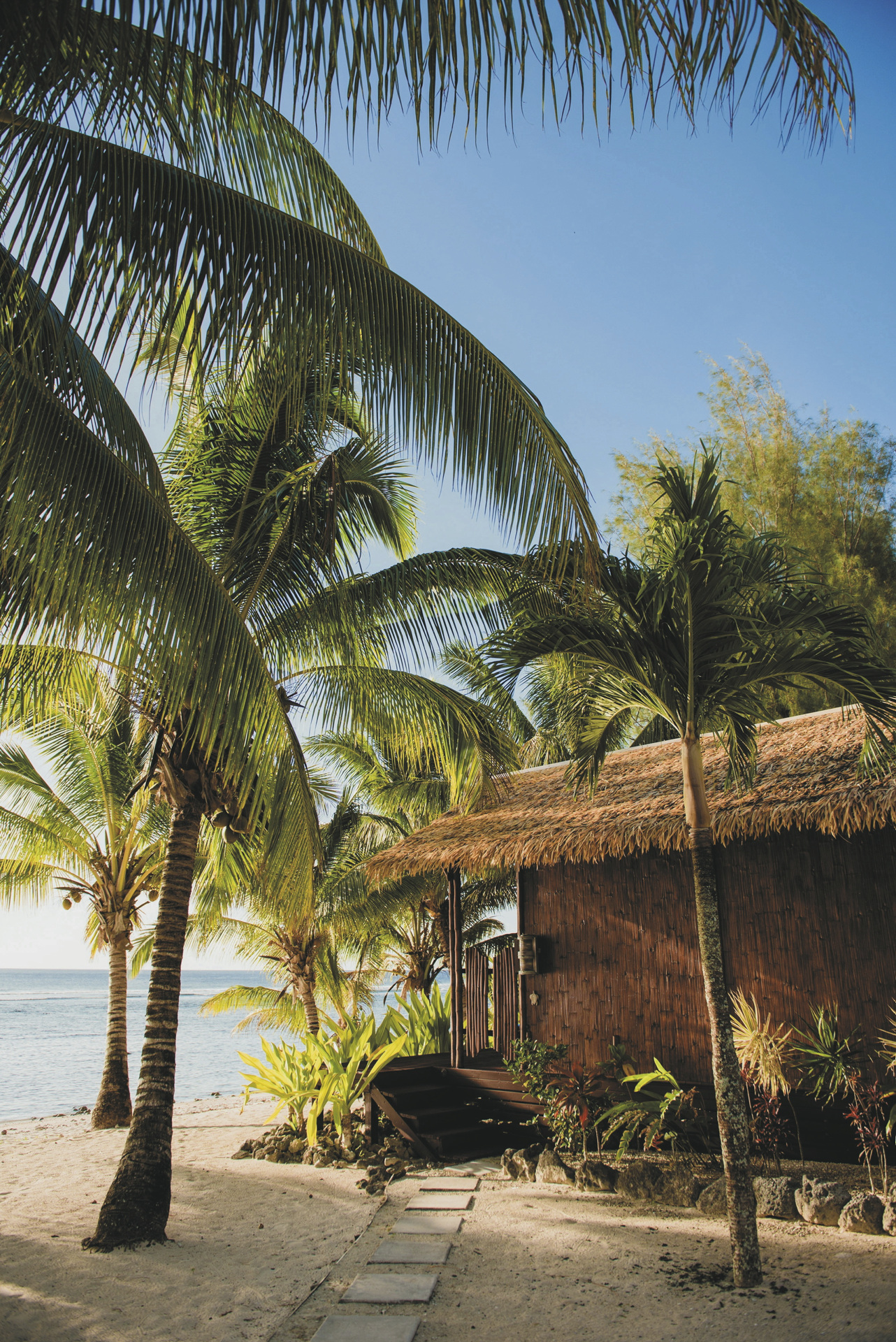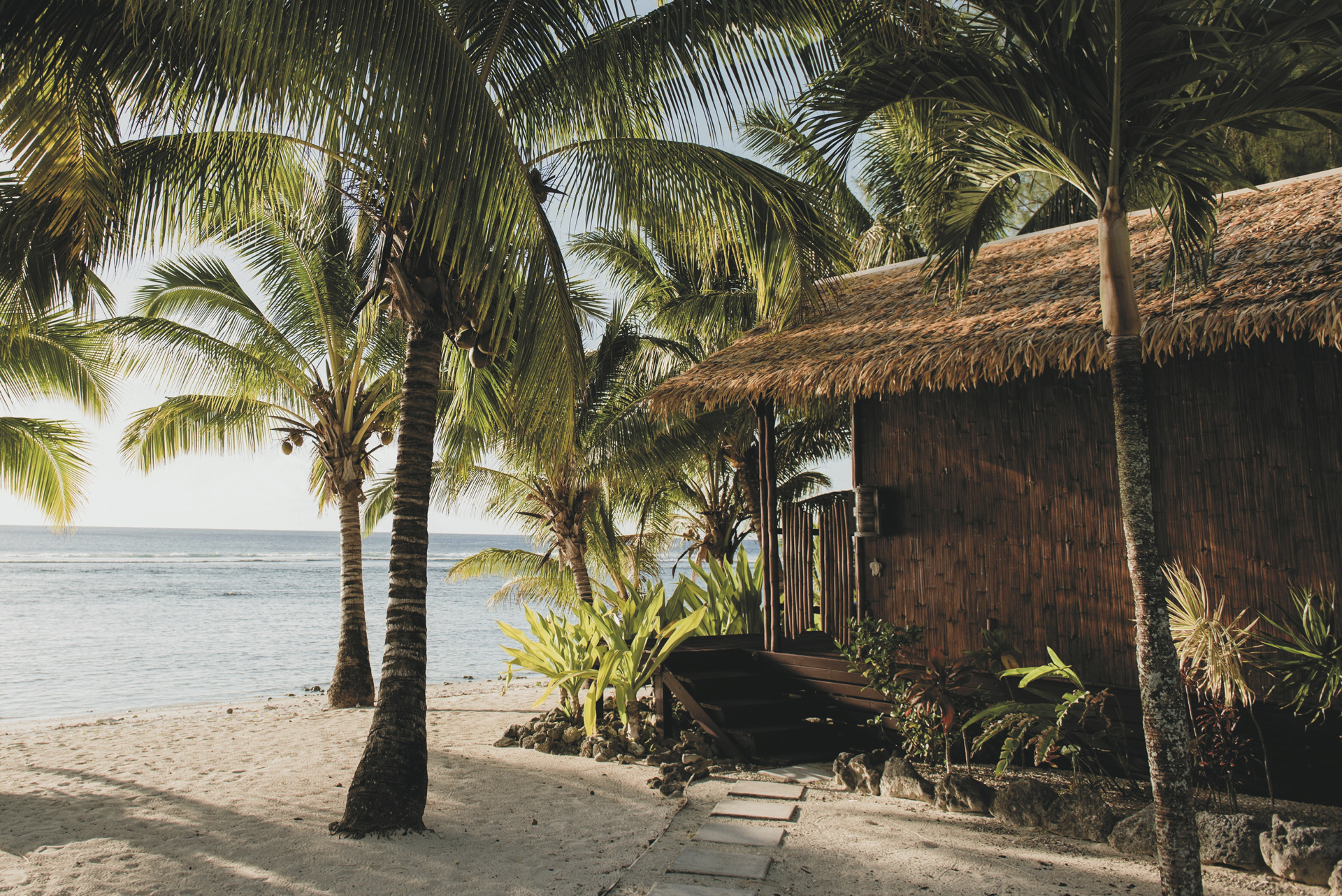 Die Bungalows liegen an der Westküste, direkt an einer schönen geschützen Lagune, der Sonnenuntergangseite der Insel. Es gibt gute Schnorchelgründe, aber eingeschränkte Schwimmmöglichkeiten. Cafés, Restaurants, Shops und Bushaltestelle in der Nähe.