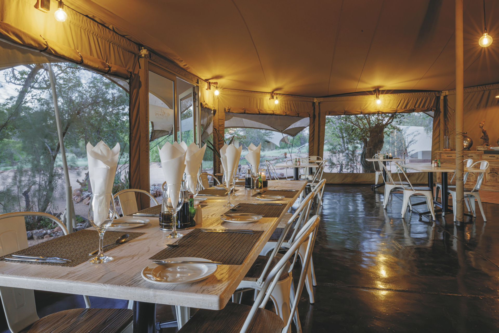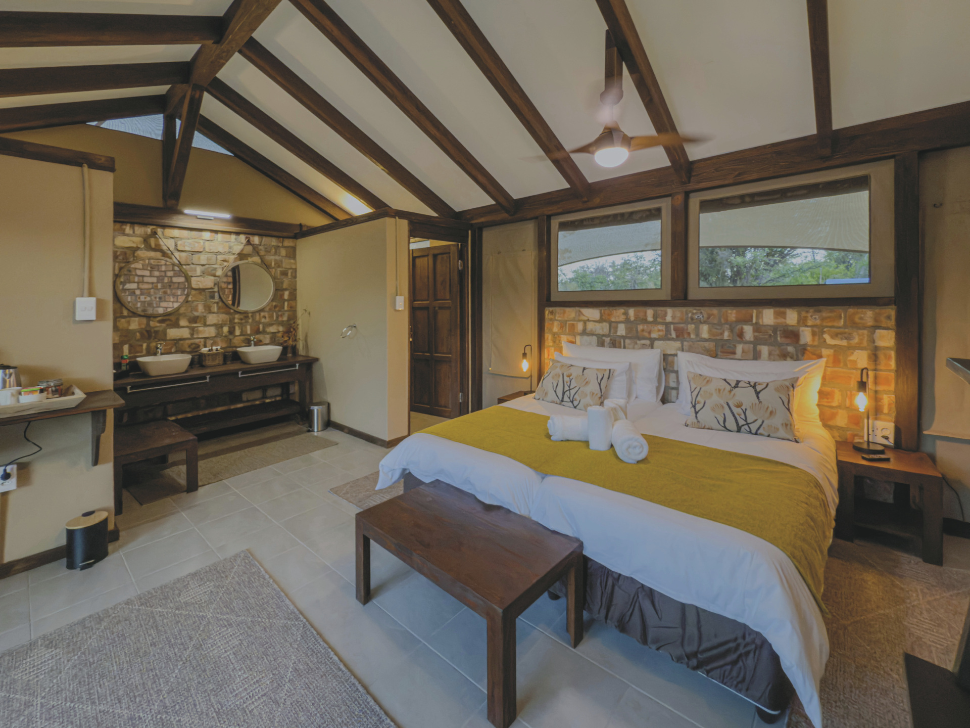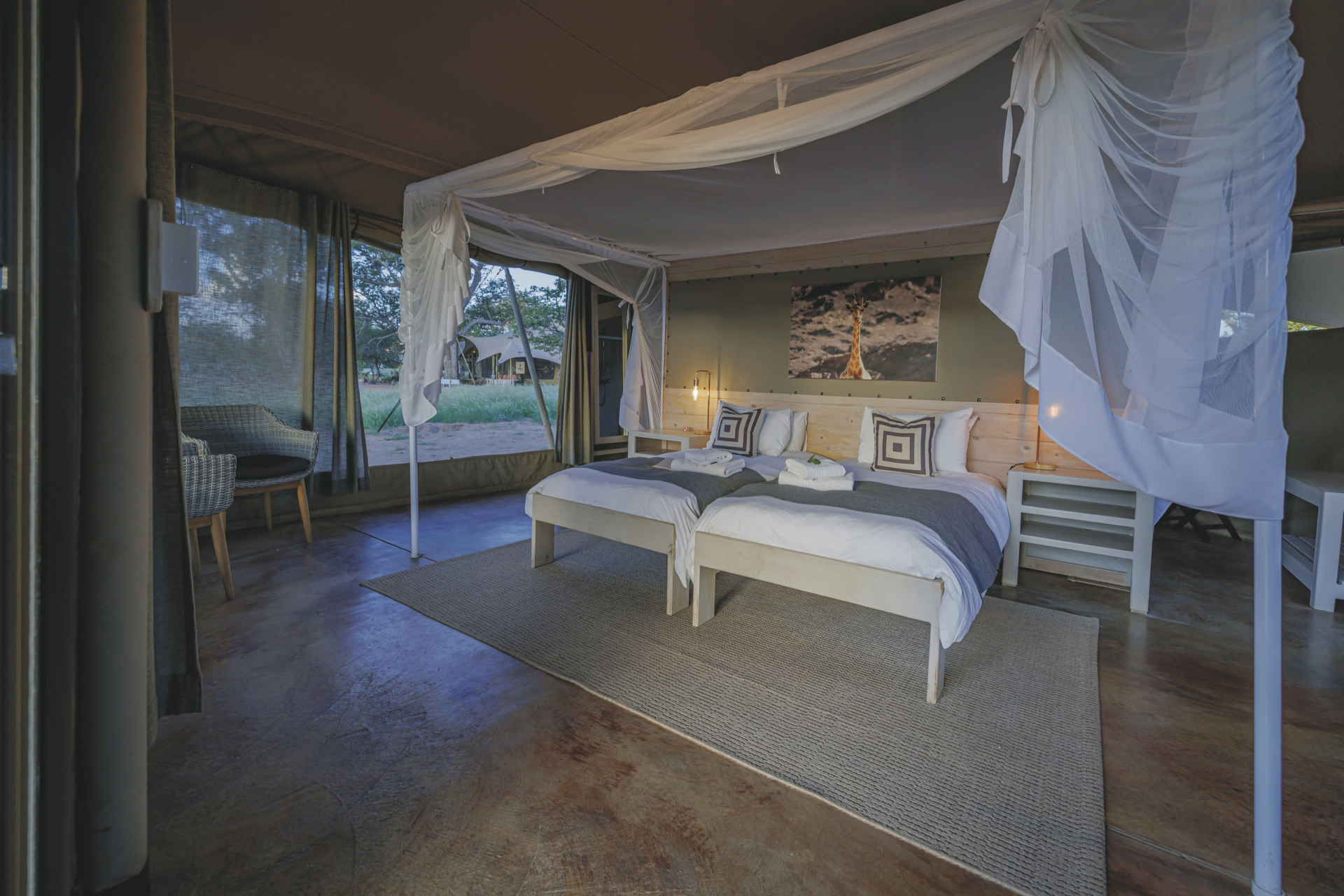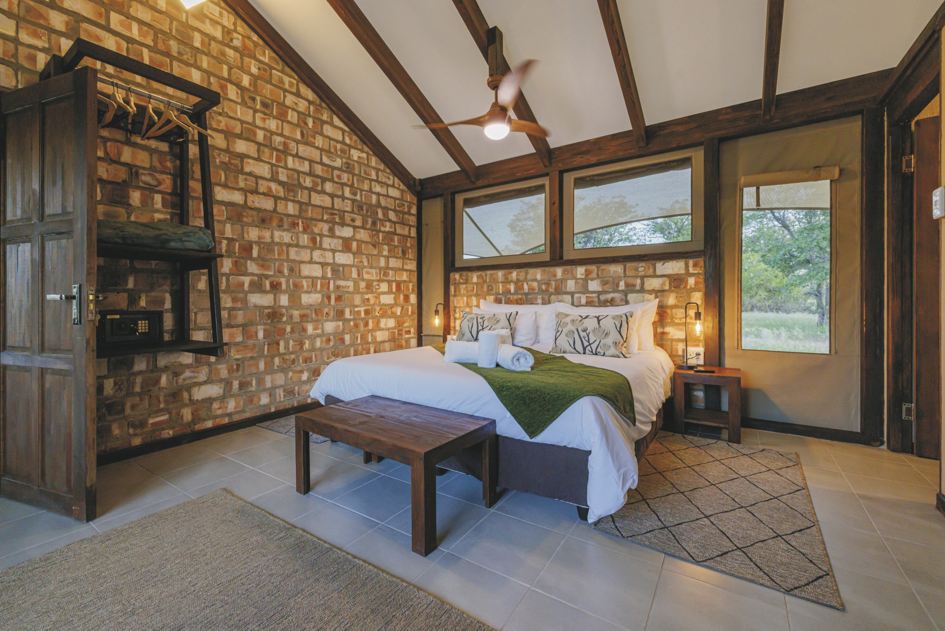 Dieses Camp verbindet im Design ein Hauch von Abenteuer mit komfortabler Gemütlichkeit. Hell, luftig und afrikanisch kommt das Interieur daher.