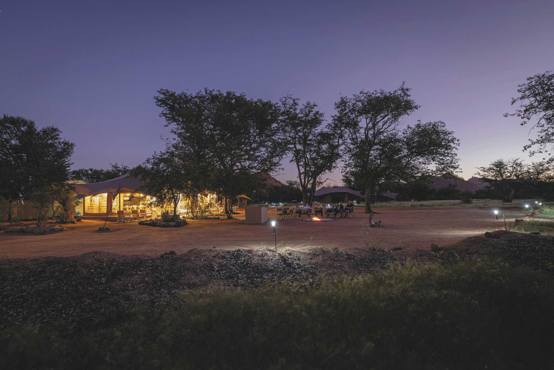 Im Hauptbereich finden Sie das große Lounge- und Speisezimmer mit der Honesty-Bar. Am Abend lodert ein gemütliches Feuer in der Feuerstelle und lockt zum Plausch. Ein herrlicher Pool bietet Erfrischung an heißen Tagen. Am Wasserloch kann man mit etwas Glück vorbeiziehendes Wild beobachten. Kostenloses WLAN im Hauptbereich. Optionale Aktivitäten: Rundfahrt zu den Sehenswürdigkeiten um Twyfelfontein, Pirschfahrt zum Aufspüren der hier lebenden seltenen Wüstenelefanten.