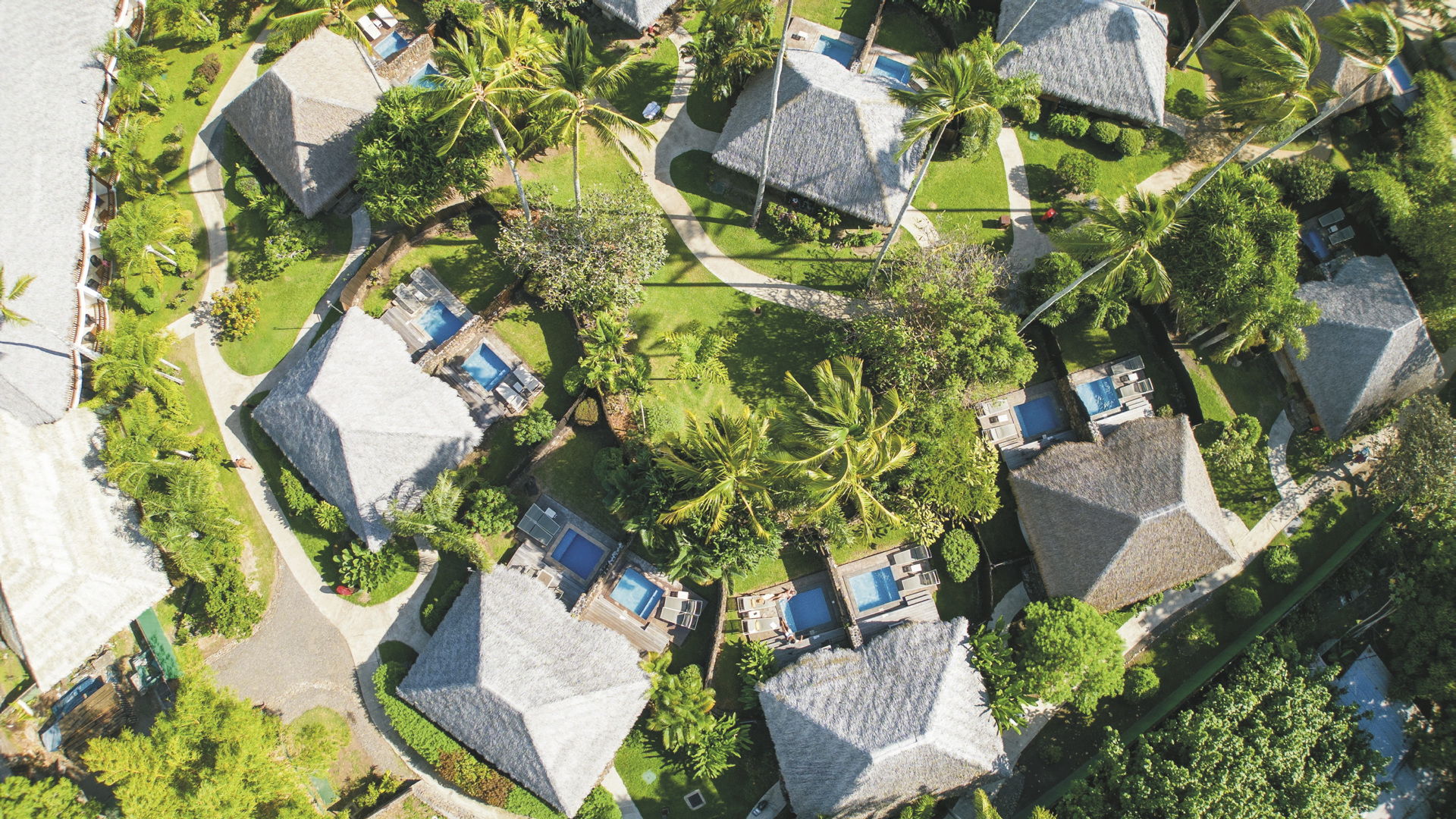 Die Anlage bietet 90 Wohneinheiten vom Gartenzimmer im Reihenbungalow über freistehende Bungalows im Garten und am Strand bis zu Overwater-Bungalows. Alle verfügen über Klimaanlage, TV, DVD, Telefon, Bügeleisen, Minibar, Tee-/Kaffeezubereiter, Safe, Fön und Terrasse. Die Overwater-Bungalows haben zusätzlich Badewanne, Glasboden und Zugang zur Lagune, die Premium Overwater freie Sicht auf die Lagune, und unser Tipp: die Gartenbungalows sind mit kleinem Pool.