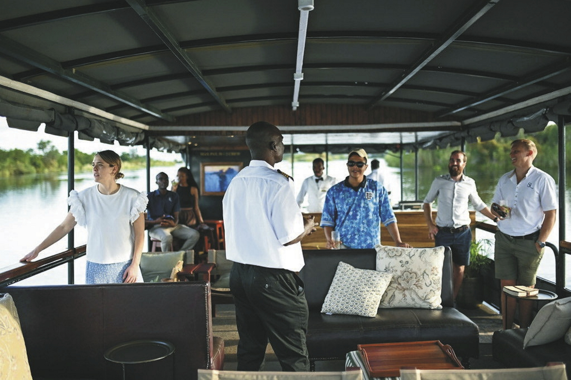 Das kleine Premium Boot Victoria hat nicht nur kaum Tiefgang und kann deswegen die wenig befahrenen Bereiche oberhalb der Fälle zwischen den Inseln Richtung Wasserfälle durchkreuzen, es bietet auch eine sehr familiäre Atmosphäre, da Sie nur mit wenigen anderen Gästen unterwegs sind. Je näher man den mächtigen Wasserfällen kommt, desto breiter fächert sich der Fluss auf. Die so entstandenen Inseln bieten zahlreichen Tieren einen exzellenten Lebensraum und viele Rückzugsmöglichkeiten. Elefanten durchqueren den Fluss auf der Suche nach Nahrung oder einfach um des Vergnügens willens, für ein erfrischendes Bad. Krokodile liegen an winzigen Sandstränden in der Sonne und Nilpferde ruhen in den kleinen Pools zwischen den Inseln.