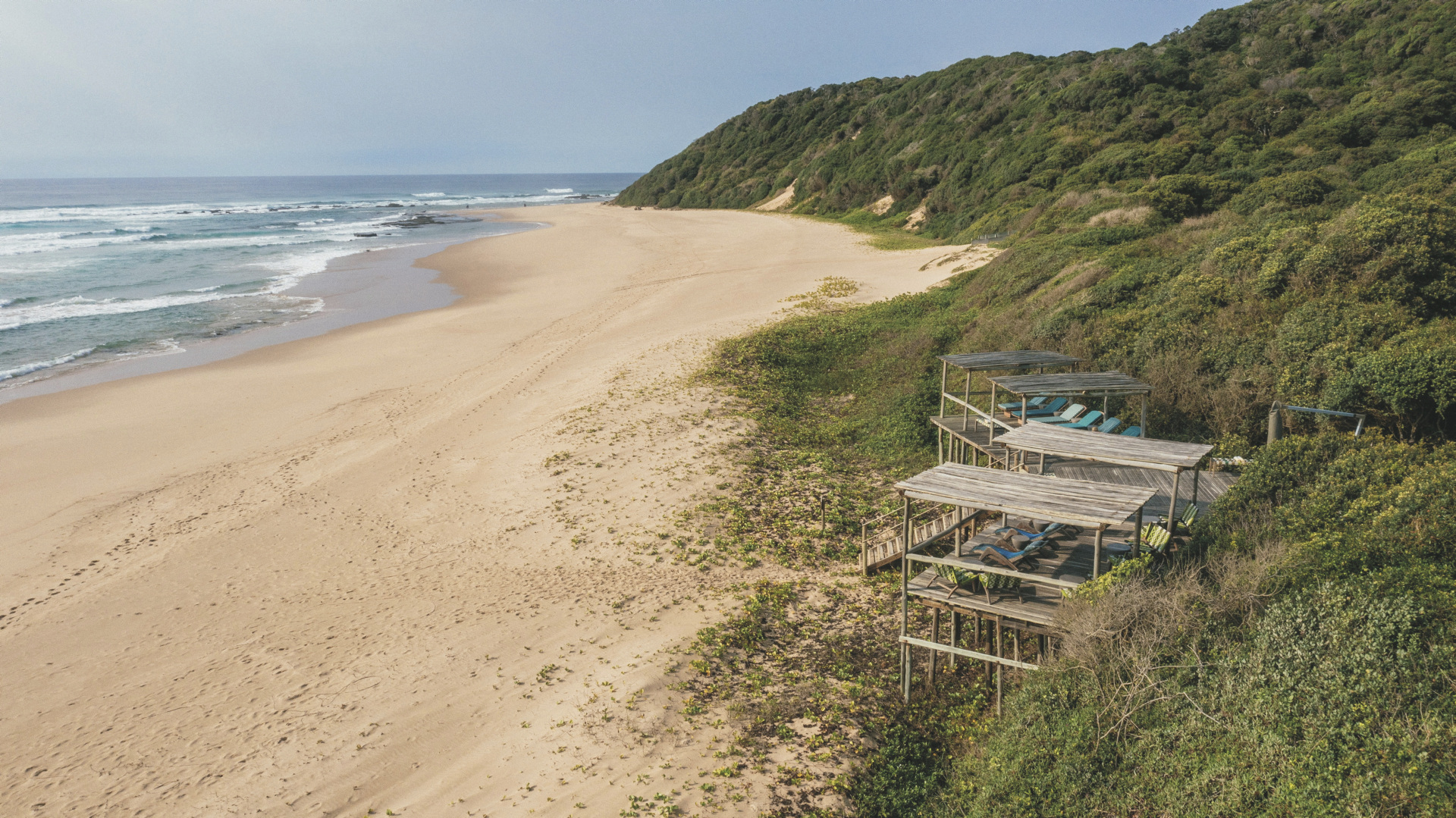 Im Küstenwald des iSimangaliso Wetland Parks mit direktem Strandzugang, Richards Bay ist ca. 3,5 Fahrstunden entfernt. Nur mit dem Allrad-Fahrzeug oder per Transfer ab Parkplatz der Librodi Lodge (ca. 1 Fahrstunde) erreichbar.