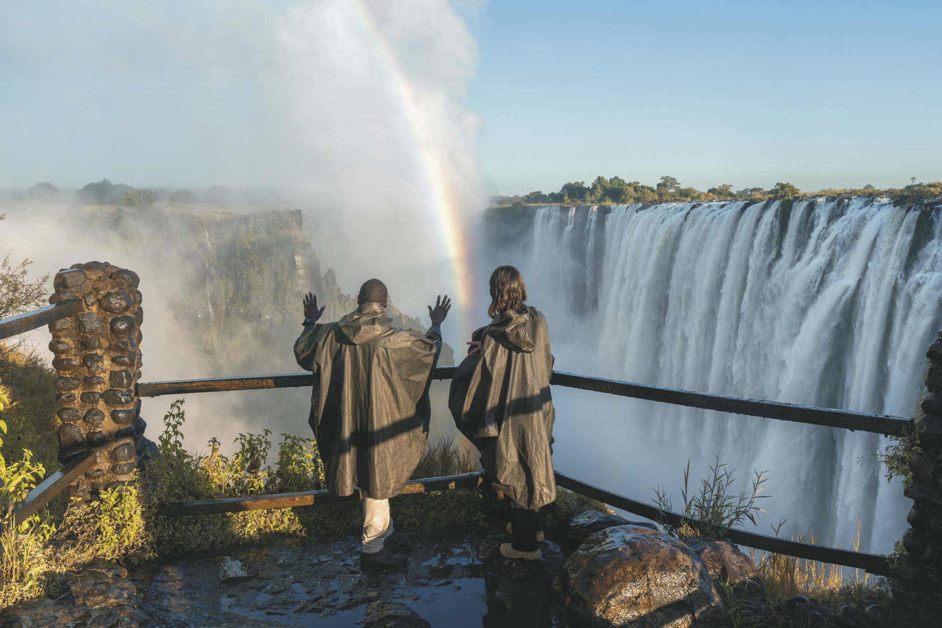 Livingstone (F/M/A).Es erwartet Sie ein Tag voller Erlebnisse. Die weltberühmten Victoria Wasserfälle – von den Einheimischen „Mosi-oa-Tunya“, der donnernde Rauch, genannt – liegen nur wenige Kilometer entfernt und lassen sich wunderbar im Rahmen eines geführten Ausflugs entdecken. Spüren Sie die Gischt auf der Haut, während Millionen Liter Wasser in die Tiefe stürzen – ein unvergessliches Naturerlebnis. Am Nachmittag bleibt Zeit für weitere Aktivitäten rund um die Lodge. Unternehmen Sie eine Fahrt mit dem elektrischen Dhow, erkunden Sie das nahegelegene Simonga-Dorf bei einem kulturellen Besuch oder besuchen Sie den Mosi-oa-Tunya Nationalpark. Den Abend lassen Sie ganz entspannt beim Dinner unter freiem Himmel ausklingen – mit dem sanften Plätschern des Flusses und dem fernen Brüllen von Flusspferden im Ohr.