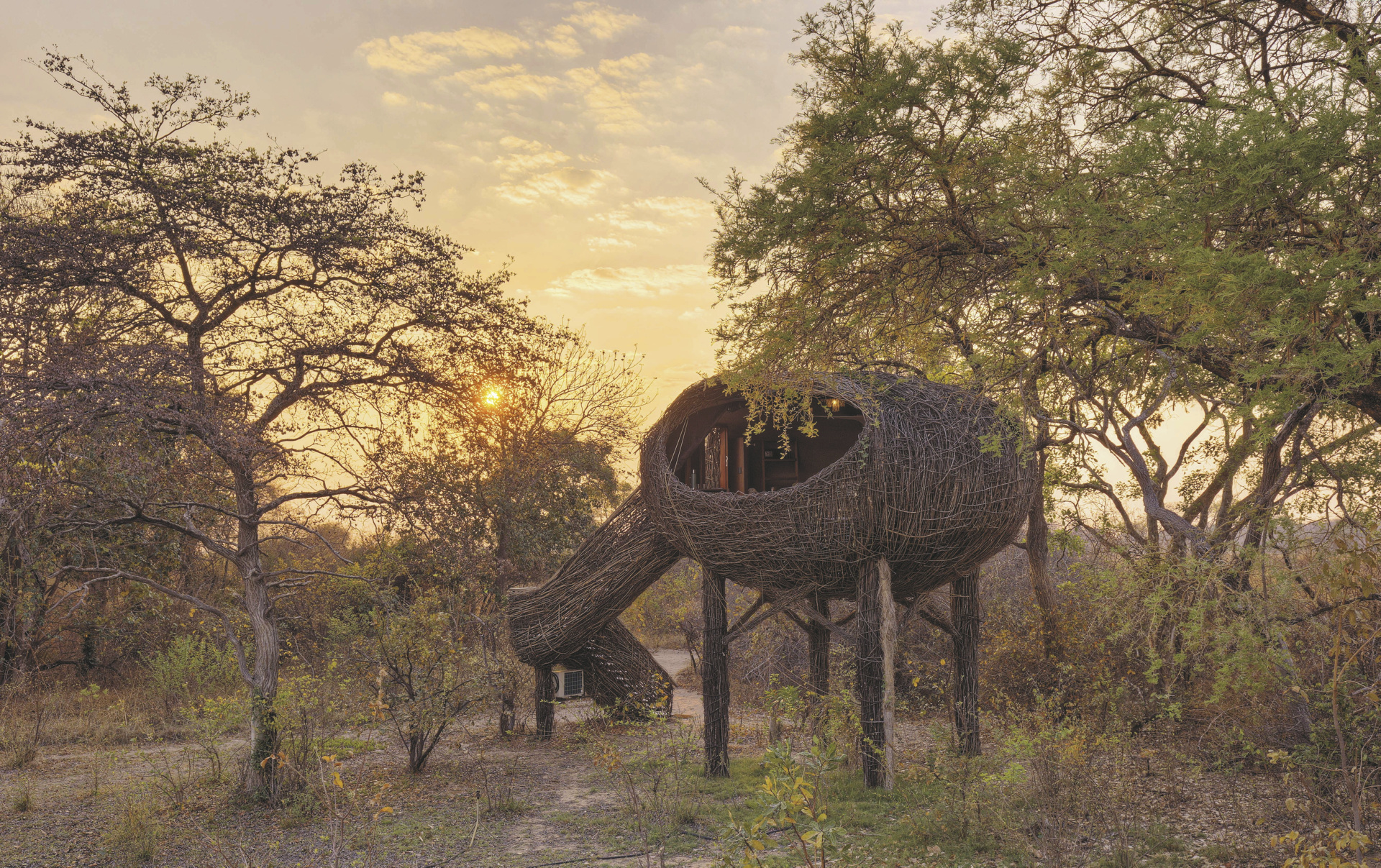 Dieses außergewöhnliche Safari-Camp inmitten der Busanga-Ebenen vermittelt mit seinen einzigartigen „Nest“-Unterkünften ein Gefühl von Geborgenheit und Nähe zur Natur.