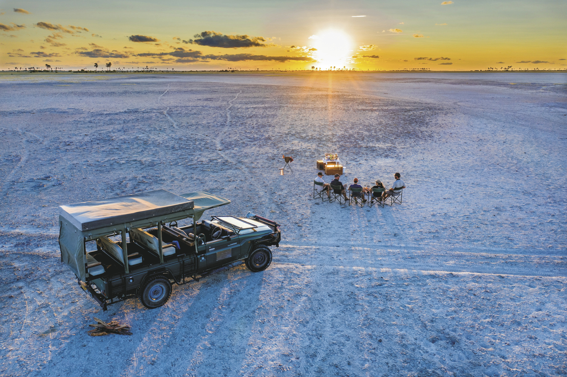 Khwai Private Reserve - Makgadikgadi Pans (F/M/A).Nach intensiven Safari-Tagen im Khwai Private Reserve heben Sie heute mit dem Kleinflugzeug ab und lassen die Flusslandschaften des Okavango hinter sich. Der Flug führt Sie über die sich wandelnde Landschaft Botswanas bis zu den endlosen Weiten der Makgadikgadi Salzpfannen – ein Ort von stiller Magie und zeitloser Schönheit. Am Rande dieser surrealen Landschaft liegt das legendäre Jack’s Camp, wo Luxus auf Abenteuer trifft. Die stilvollen Zelte im Retro-Safari-Design, das offene Panorama und die tiefe Ruhe der Umgebung schaffen eine Atmosphäre, die berührt und entschleunigt.