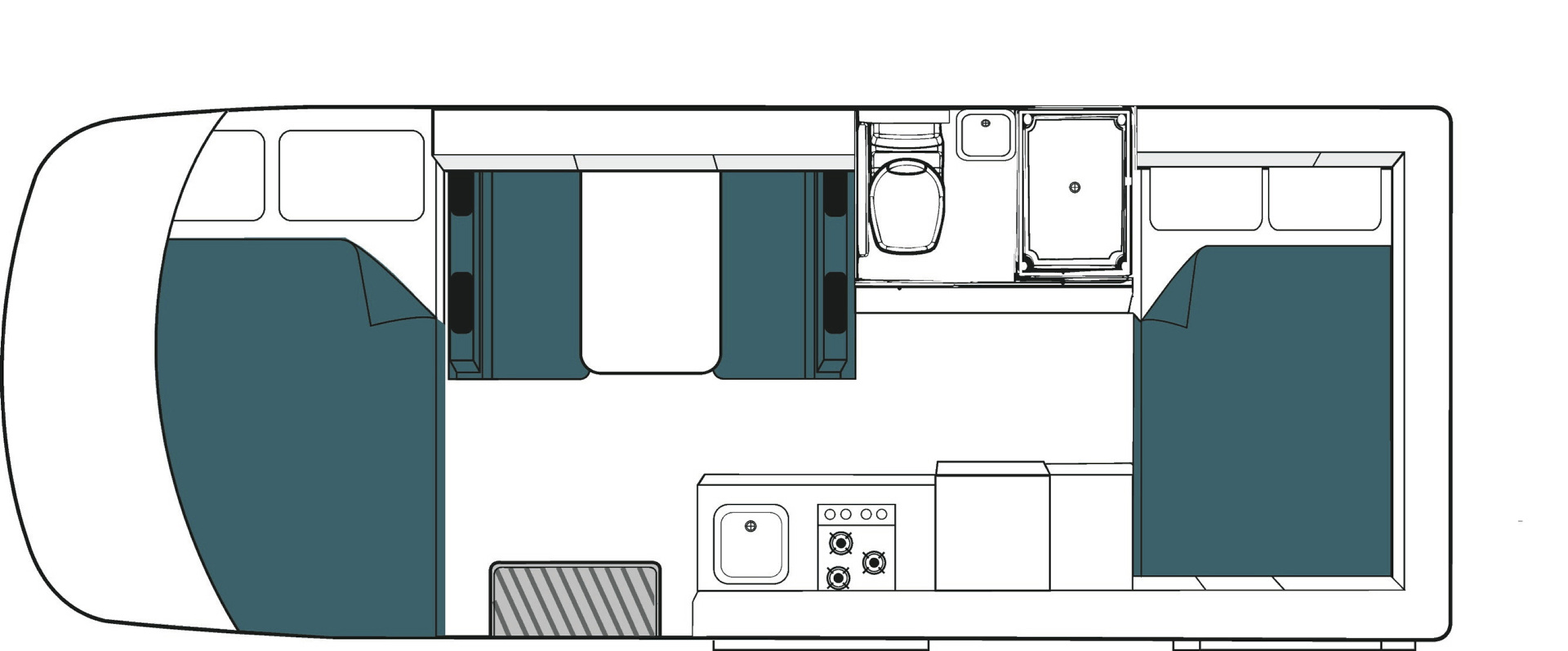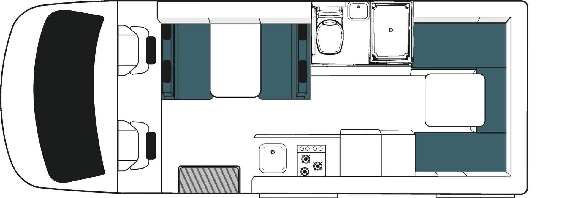 • 4 Sitzplätze im Wohnbereich hinter der Fahrerkabine