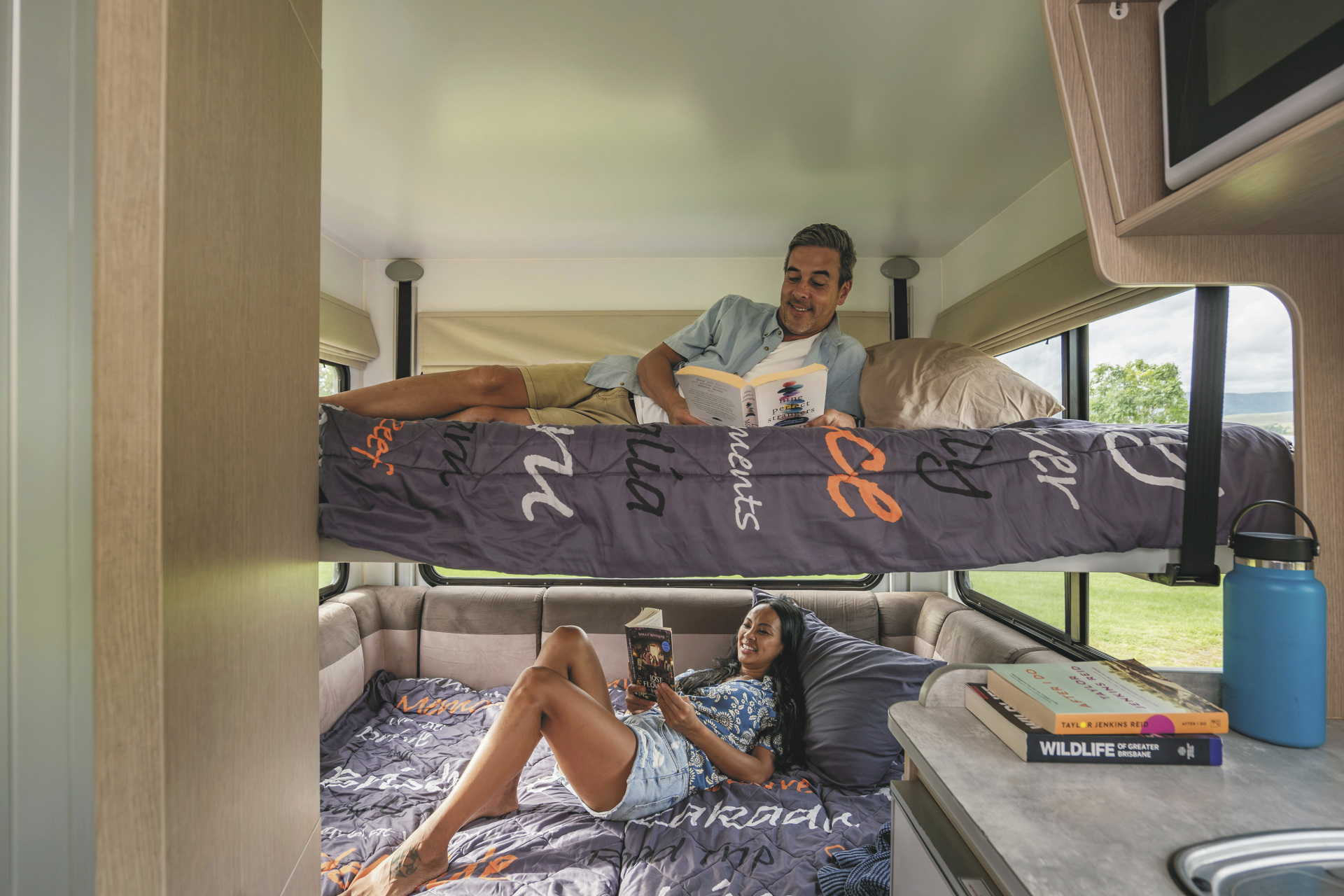 Das kleinste Maui Wohnmobil, komfortabel ausgestattet und mit einem innovativen Bettensystem. Geeignet für max. 4 Personen.