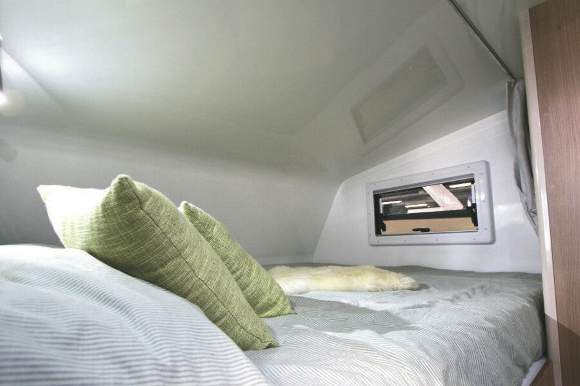 • festes Doppelbett über der Fahrerkabine 1,90 x 1,50 m• Hecksitzgruppe, zum schmalen Doppelbett umbaubar: 1,90 x 1,10 m