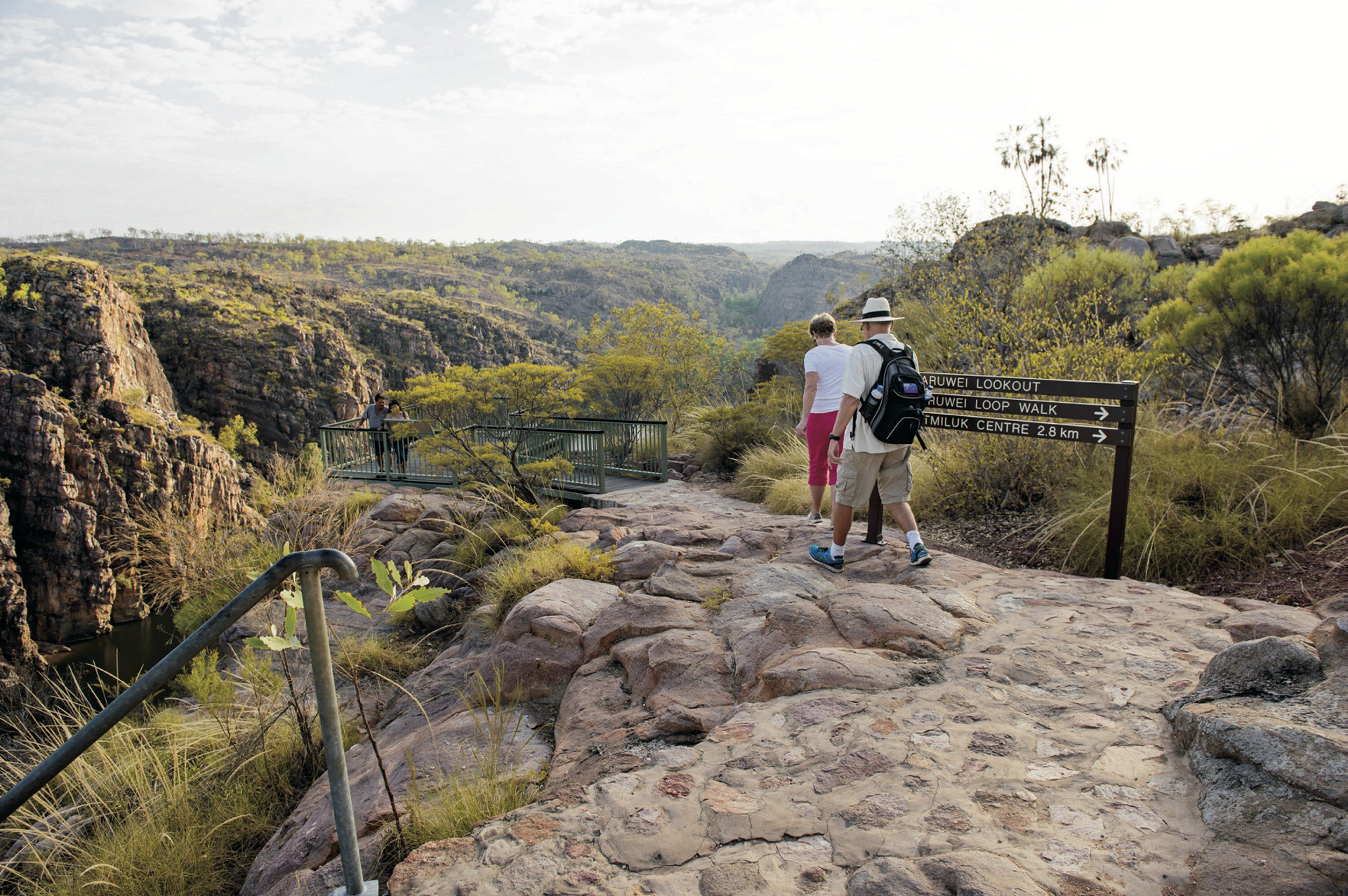 Der bekannte Nitmiluk (Katherine Gorge) Nationalpark liegt nur ca. 30 Autominuten entfernt. Ein Schluchtensystem bestehend aus 13 Schluchten lädt ein, zu Land, zu Wasser und aus der Luft erkundet zu werden. Es gibt fantastische Wandermöglichkeiten unterschiedlichen Anspruchs mit atemberaubenden Ausblicken hinab in die Schlucht. Beliebt sind Bootsfahrten (optional), allen voran die zum Sonnenuntergang mit Abendessen an Bord. Aber auch aus der Luft per Helikopter bieten sich unvergessliche Ausblicke.