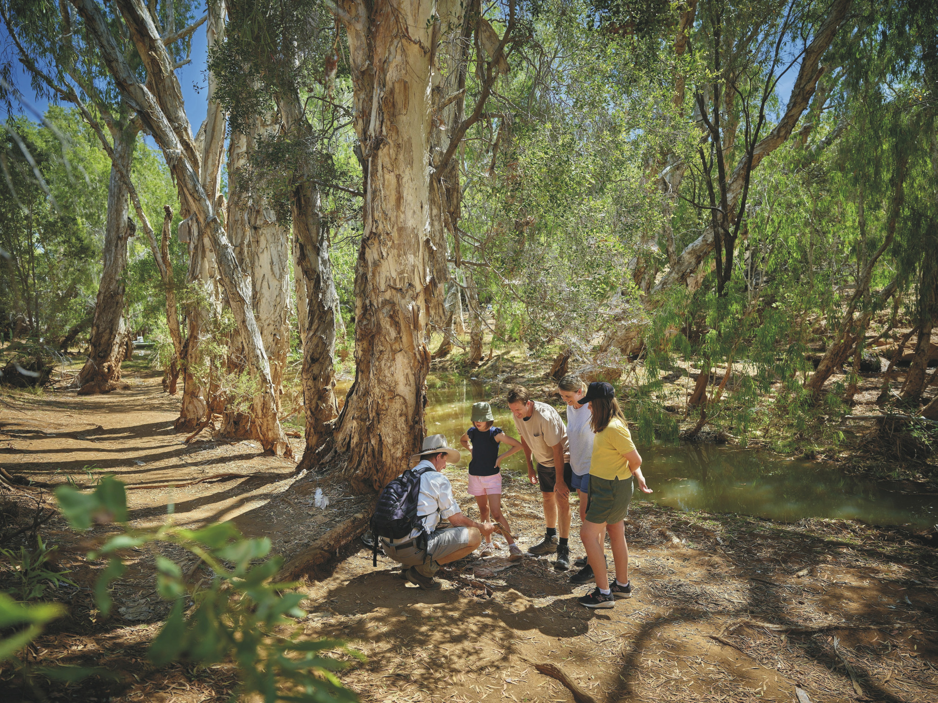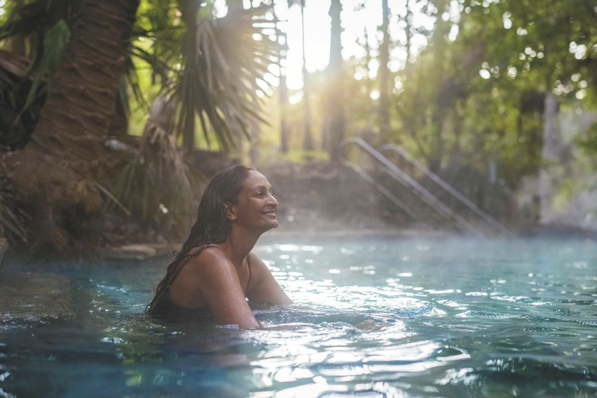 Die heutige Etappe ist nicht ganz so lang. Der Roper Highway trifft südlich von Mataranka auf den Stuart Highway, der legendären Nord-Süd-Verbindung mitten durch den australischen Kontinent. Im Elsey National Park laden in Mataranka heiße Thermalquellen zu einem entspannenden Stopp ein, bevor die Fahrt nach Katherine fortgesetzt wird. Der Ort, wo das Outback auf die Tropen trifft.