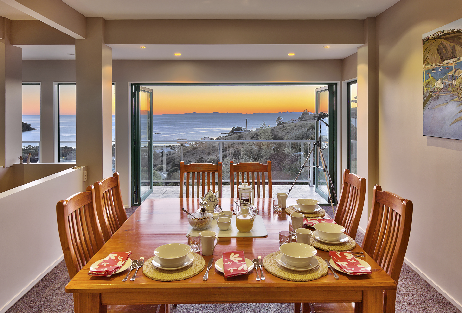 Seine Lage mit direktem Strandzugang und Blick über den Little Kaiteriteri Beach und sein modernes Ambiente lässt keine Wünsche offen. Das Haus mit moderner Architektur wurde als B&B geplant und gebaut, so ist es nicht verwunderlich, das die Gäste sich hier sofort wohl fühlen. Ein Übriges tragen die Inhaber Tui & Gordon dazu bei, indem sie Sie z.B. mit einem opulenten Frühstück verwöhnen das nur noch von dem traumhaften Ausblick über das Meer getoppt wird.Tui & Gordon helfen Ihnen gerne bei der Tagesplanung und geben Tipps für Ausflüge in die Umgebung. WLAN & Gäste-PC kostenlos.