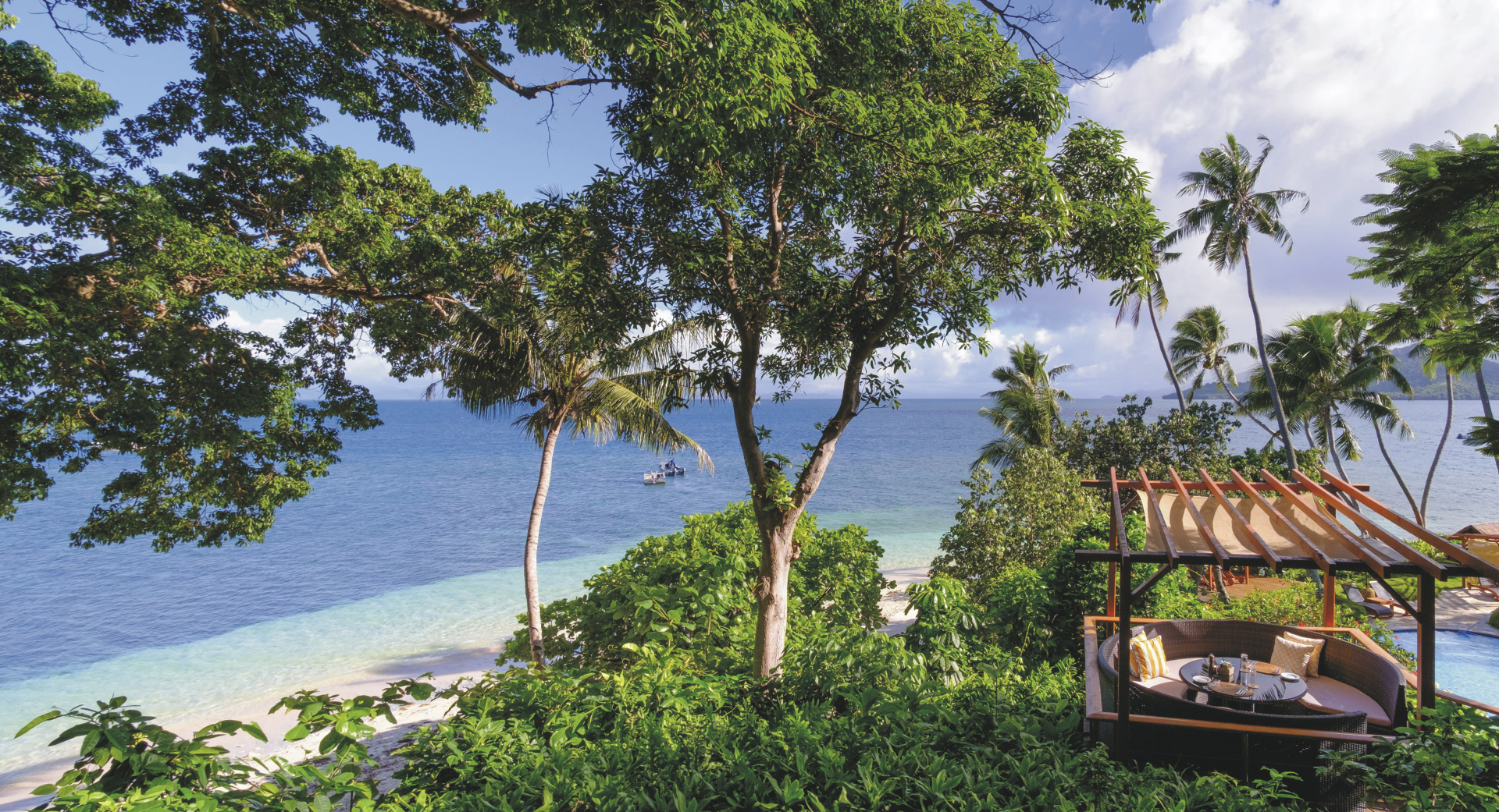 Royal Davui liegt im kristalklaren Wasser der Beqa Lagune. mit einem vorgelagerten privaten Korallenriff. Etwa 40 Boots-Minuten von Pacific Harbour entfernt.