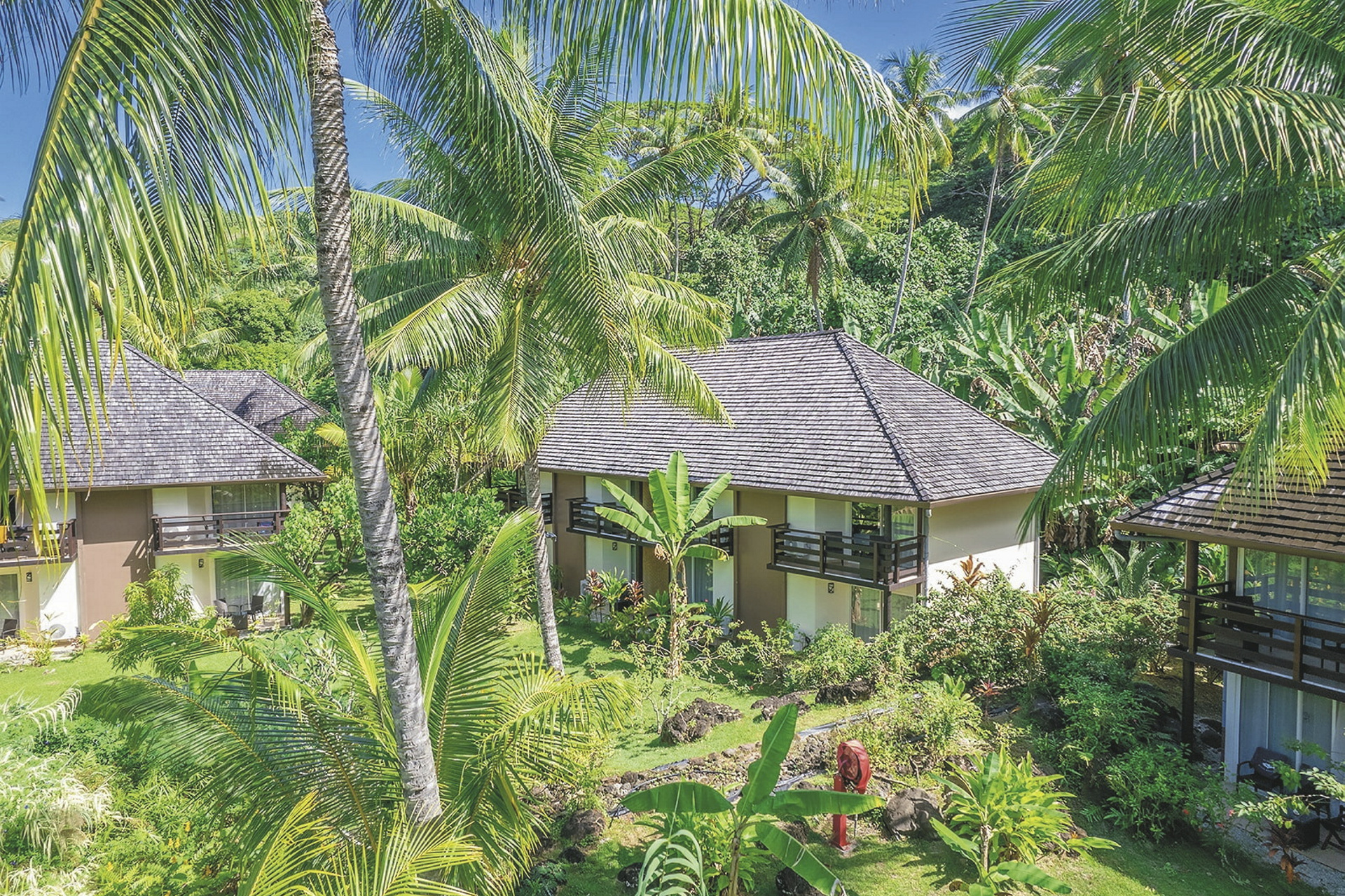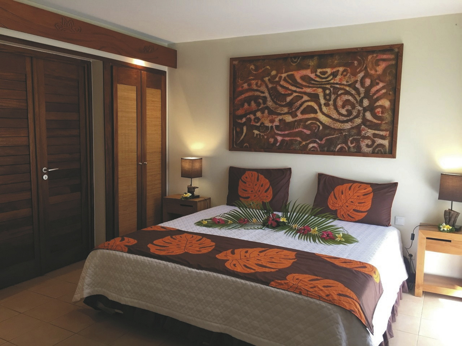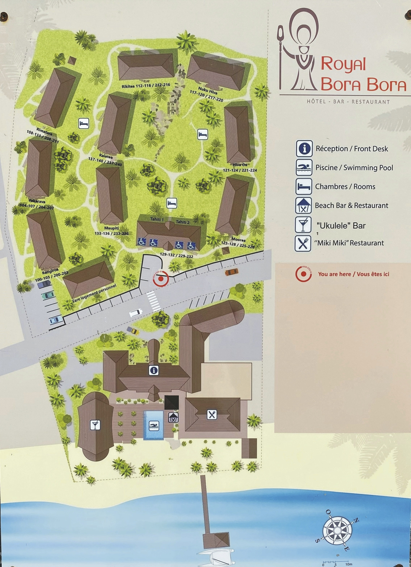Im traditionellen Stil erbaute Anlage in einem großen tropischen Garten, an einem der schönsten weissen Sandstrände. Das Restaurant mit Bar und Loungebereich, die Rezeption sowie der Infinity Pool, mit Blick auf vorgelagerte Motus , befinden sich am Strand. Die Zimmer befinden sich im Garten und sind von der restlichen Anlage durch eine Ringstrasse getrennt. Internet sowie Parkplätze sind kostenlos.